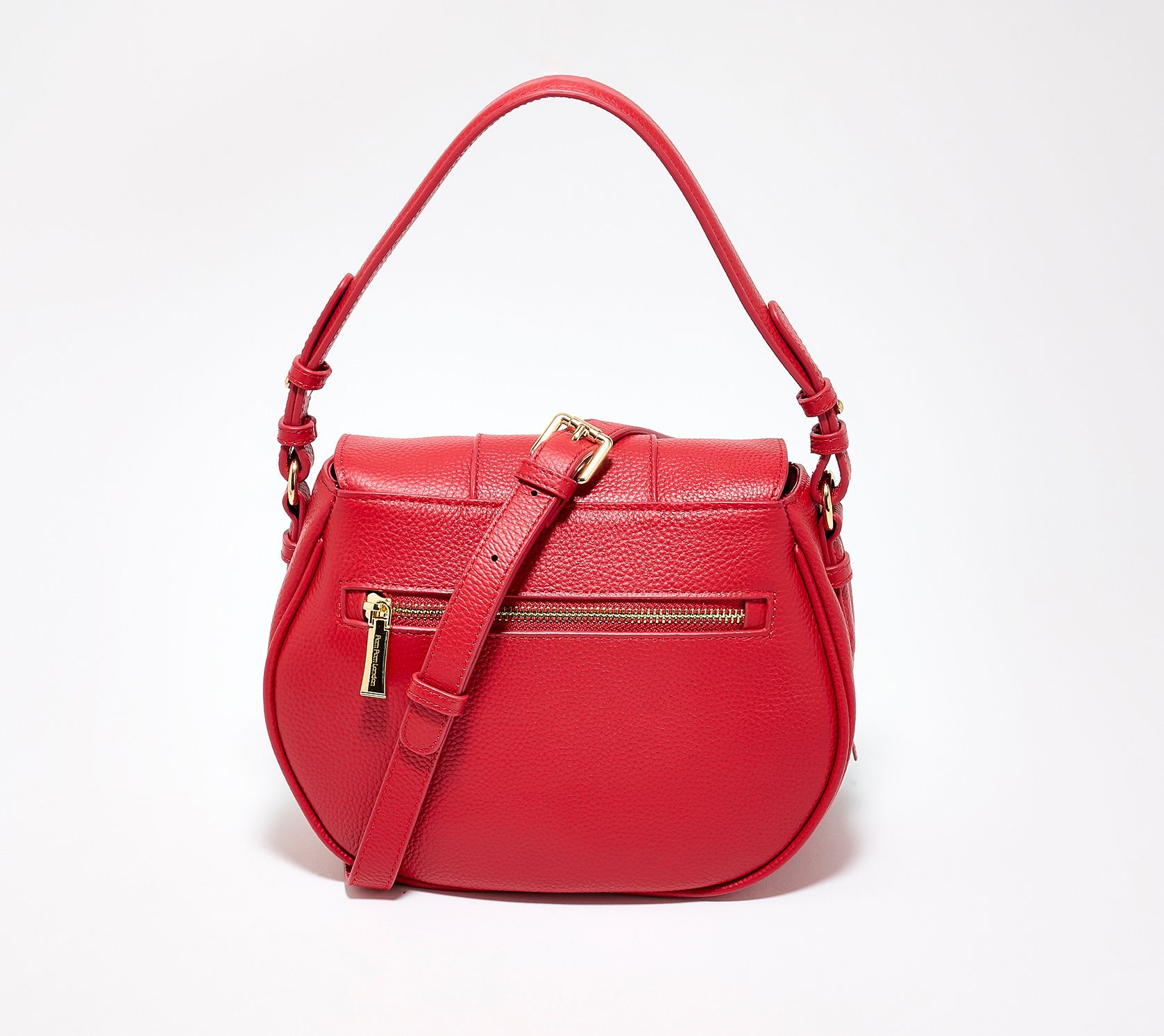 Head out for brunch, errands, or quick getaways with this versatile saddle bag, fitted with both leather and fabric crossbody straps for easy switching based on your day. Its handy magnetic flap and rear zipper pocket keep belongings secure. From Pom Pom London.