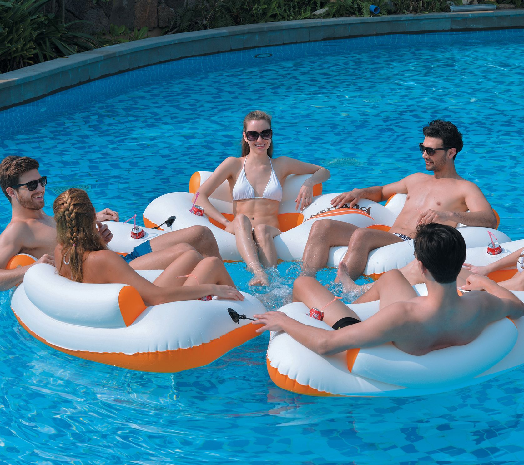 Make pool time more relaxing as you and another float atop this inflatable sofa. From Pool Central.