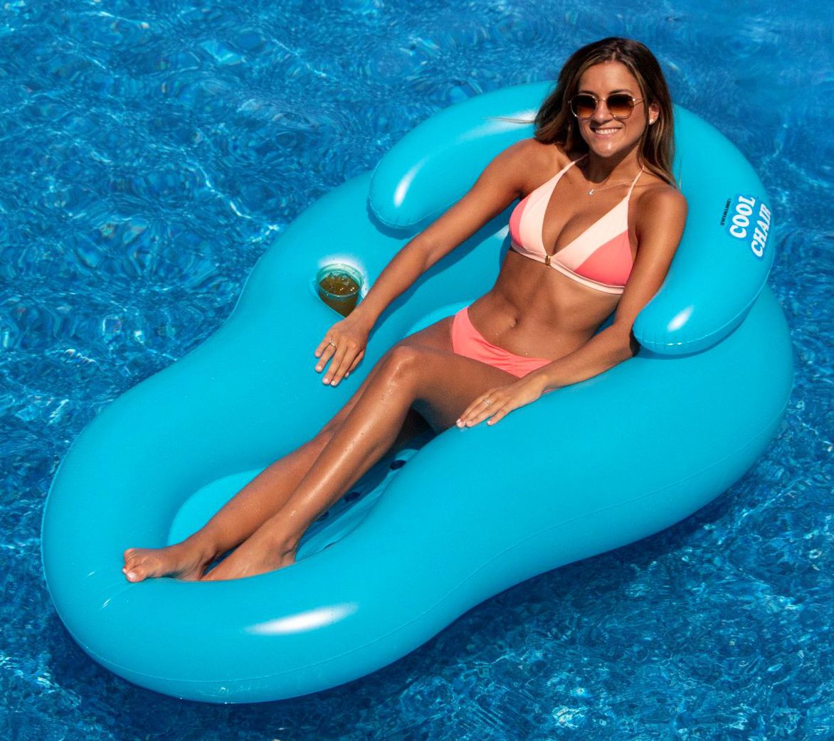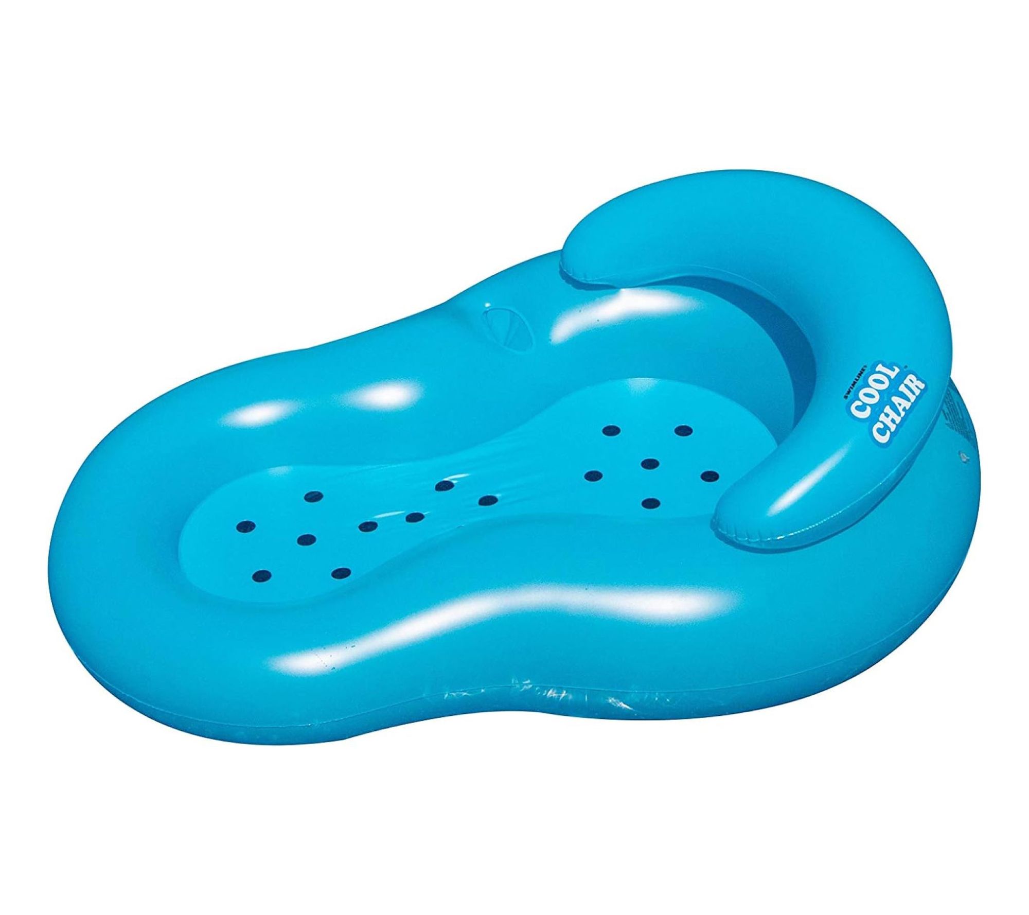 Lounge in style and comfort during your next summer pool day with this inflatable cool chair. Ideal for those who relish a relaxing float, the chair features unique armrests and headrests, providing ample support as you soak in the sun. Perforations in the deck let cool water flow in, keeping you refreshed. Enhance the experience with the integrated drink holder, ensuring your favorite beverage is always within reach. From Pool Central.