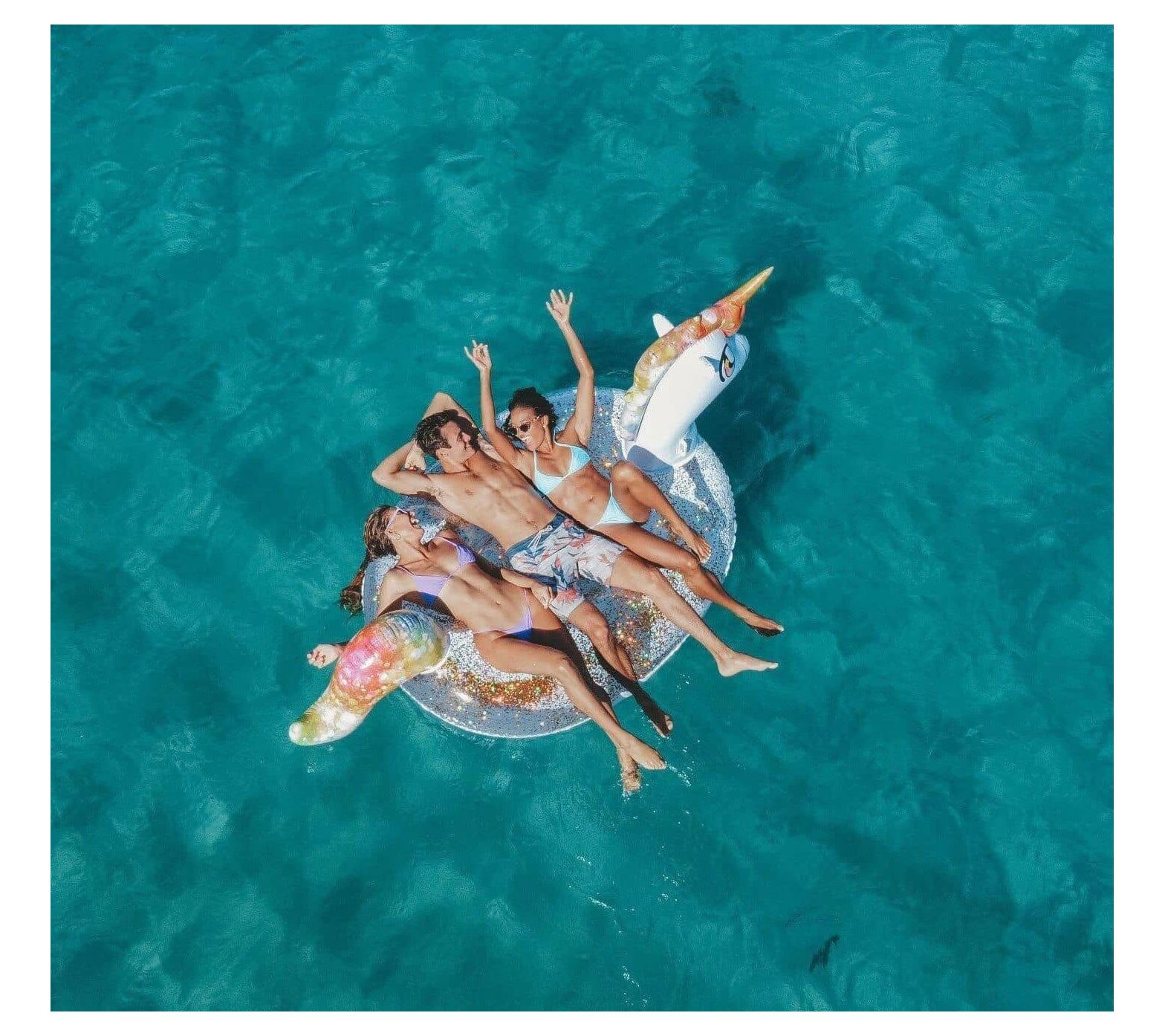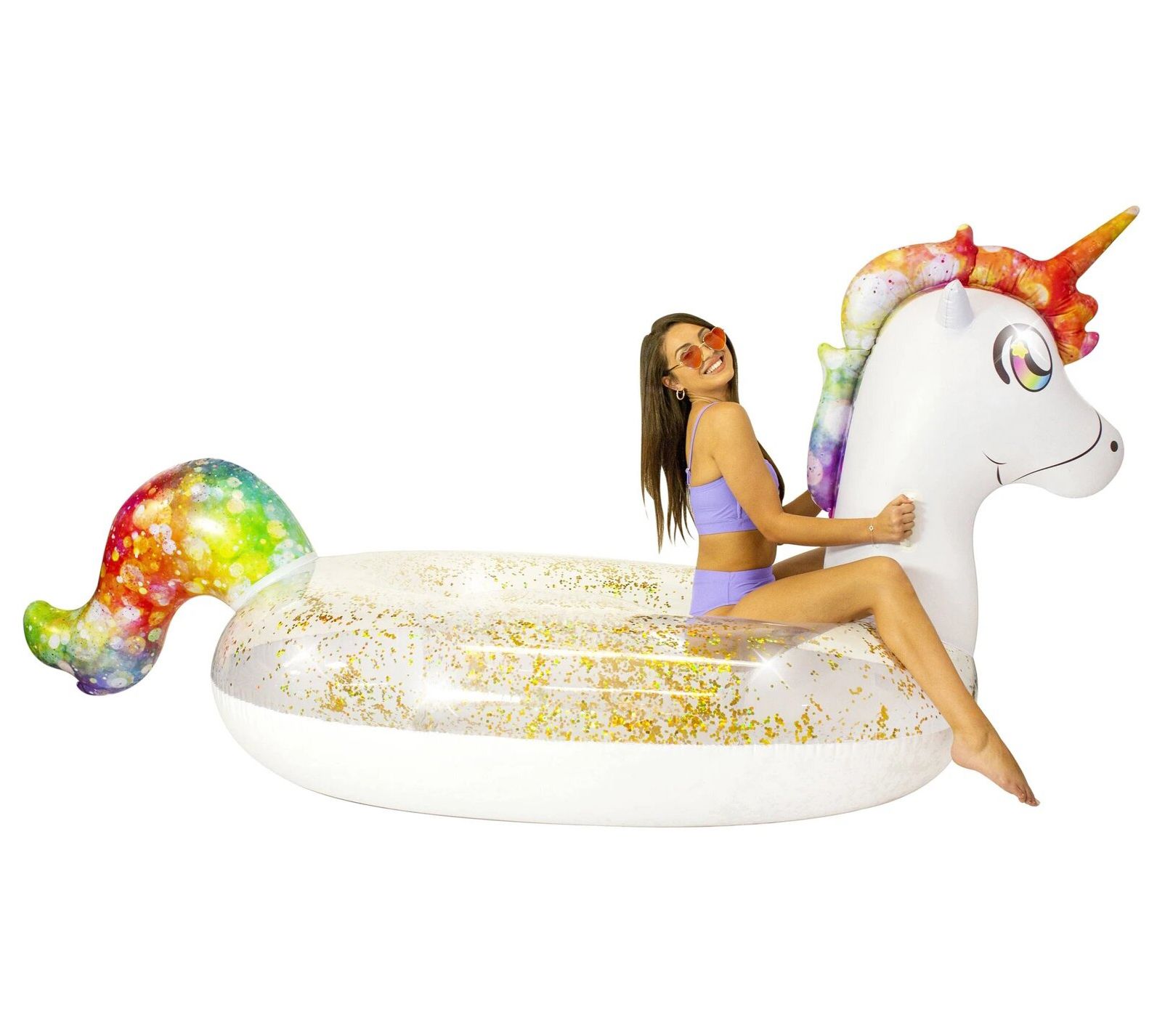 Bring a little magic to the pool with this gigantic rainbow unicorn raft. It's filled with holographic glitter and is big enough for two so you can share the fun with a friend. From PoolCandy.