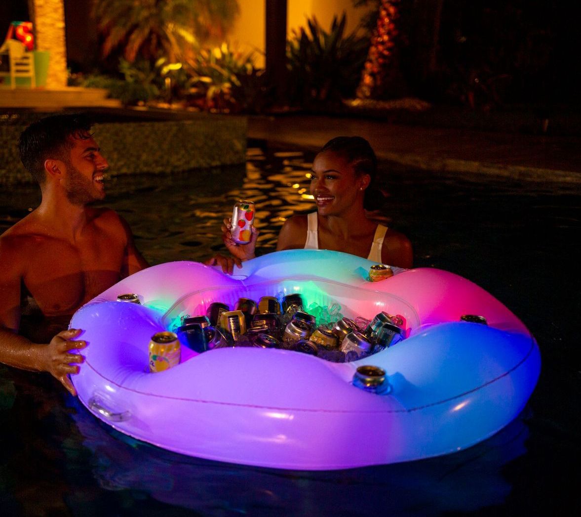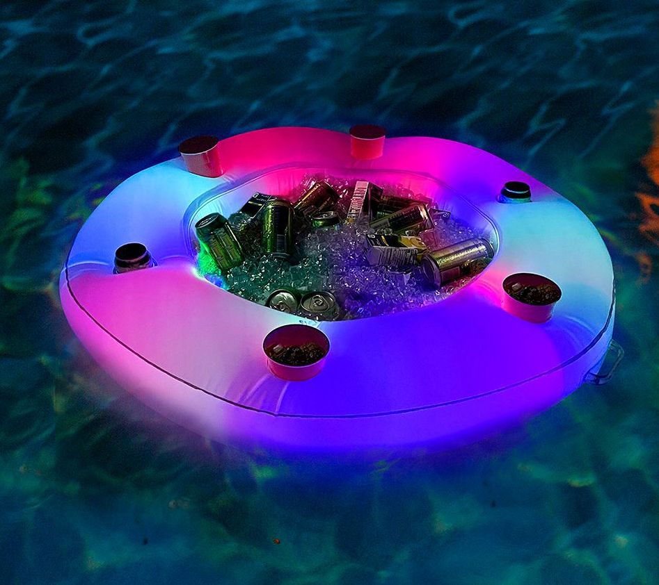 This colorful LED floating bar is an instant tabletop cooler that you can take anywhere. Most importantly, it keeps your food chilled and your drinks ice cold. From PoolCandy.