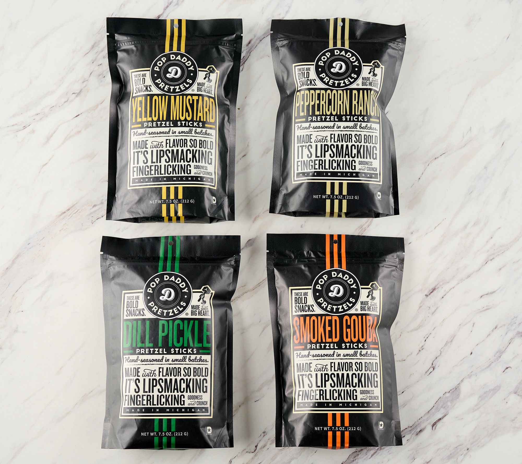 Pop Daddy (4) 7.5oz Bags Hand Seasoned Savory Pretzel Sticks