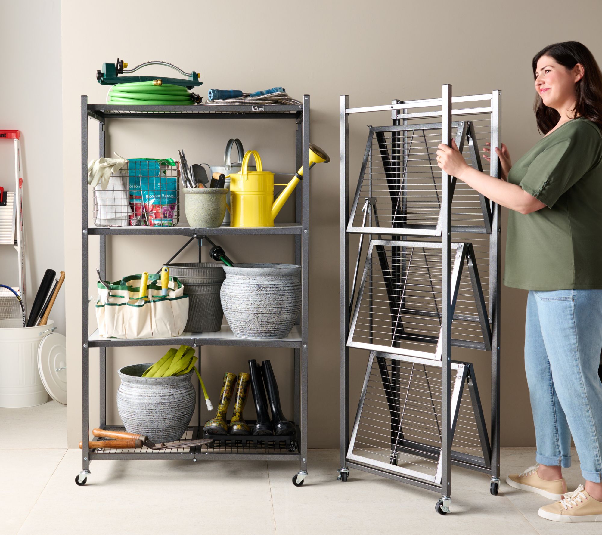 As an added bonus, these heavy-duty helpers include those three magic words: no assembly required. That's right -- just unfold them and lock them into place or fold them flat when not in use. Yes, it's really that easy! And thanks to four caster wheels, you can roll the racks to a new location or out of the way when you're cleaning or rearranging your space. From Pop-It.