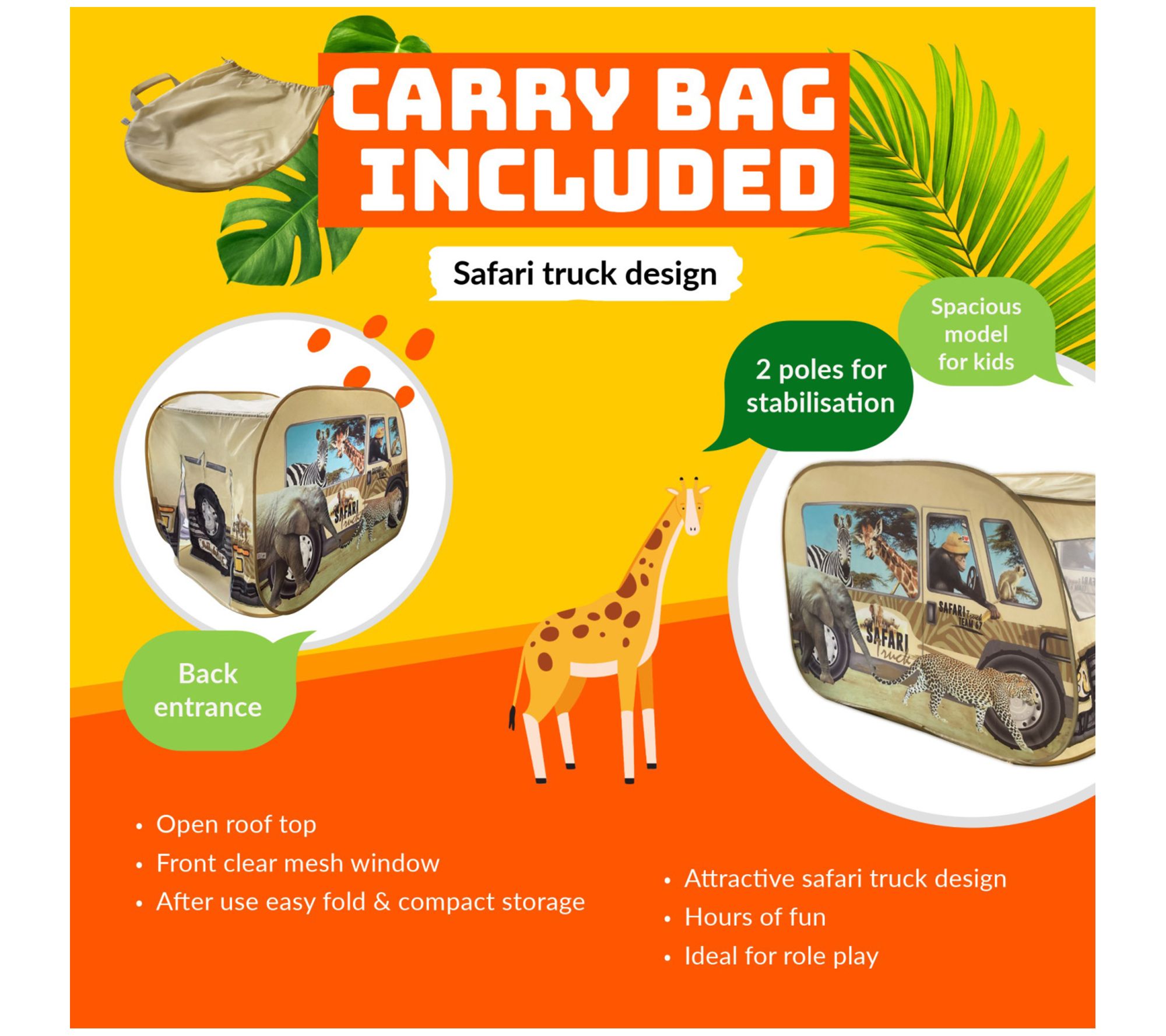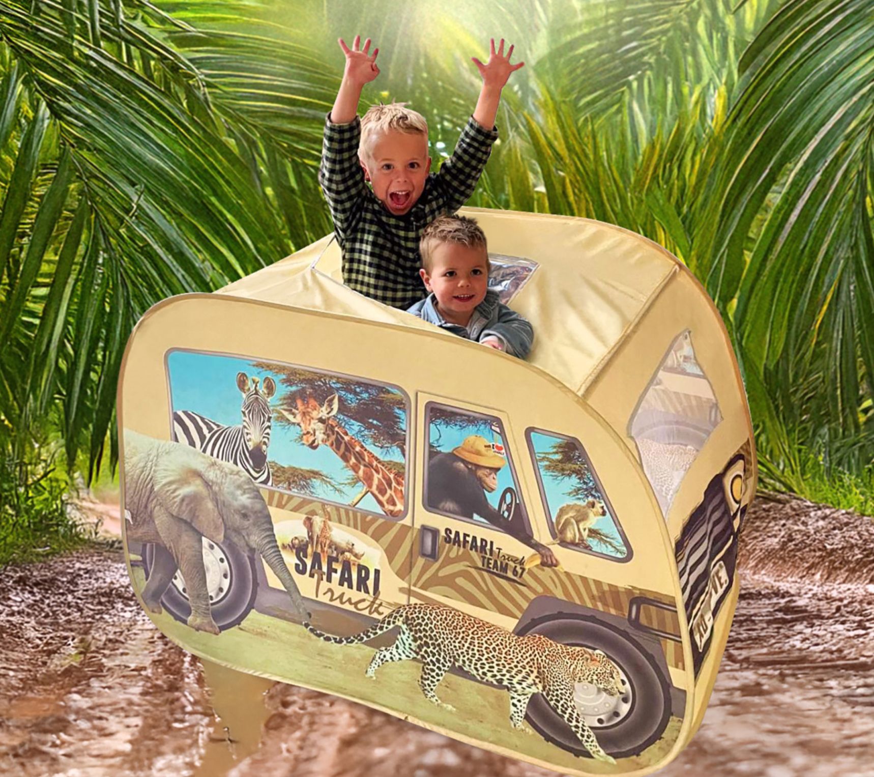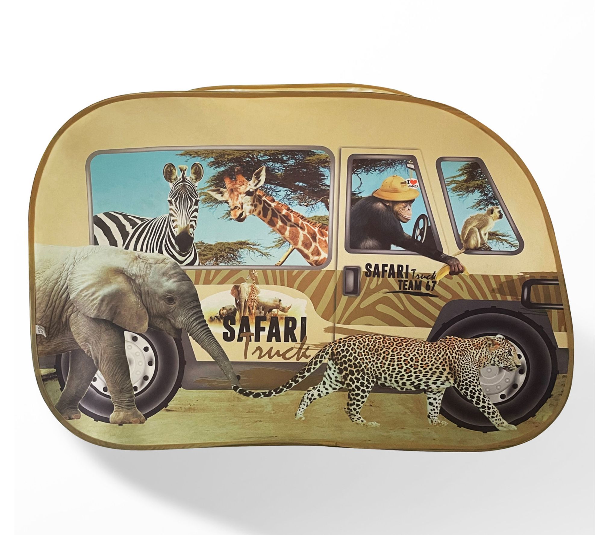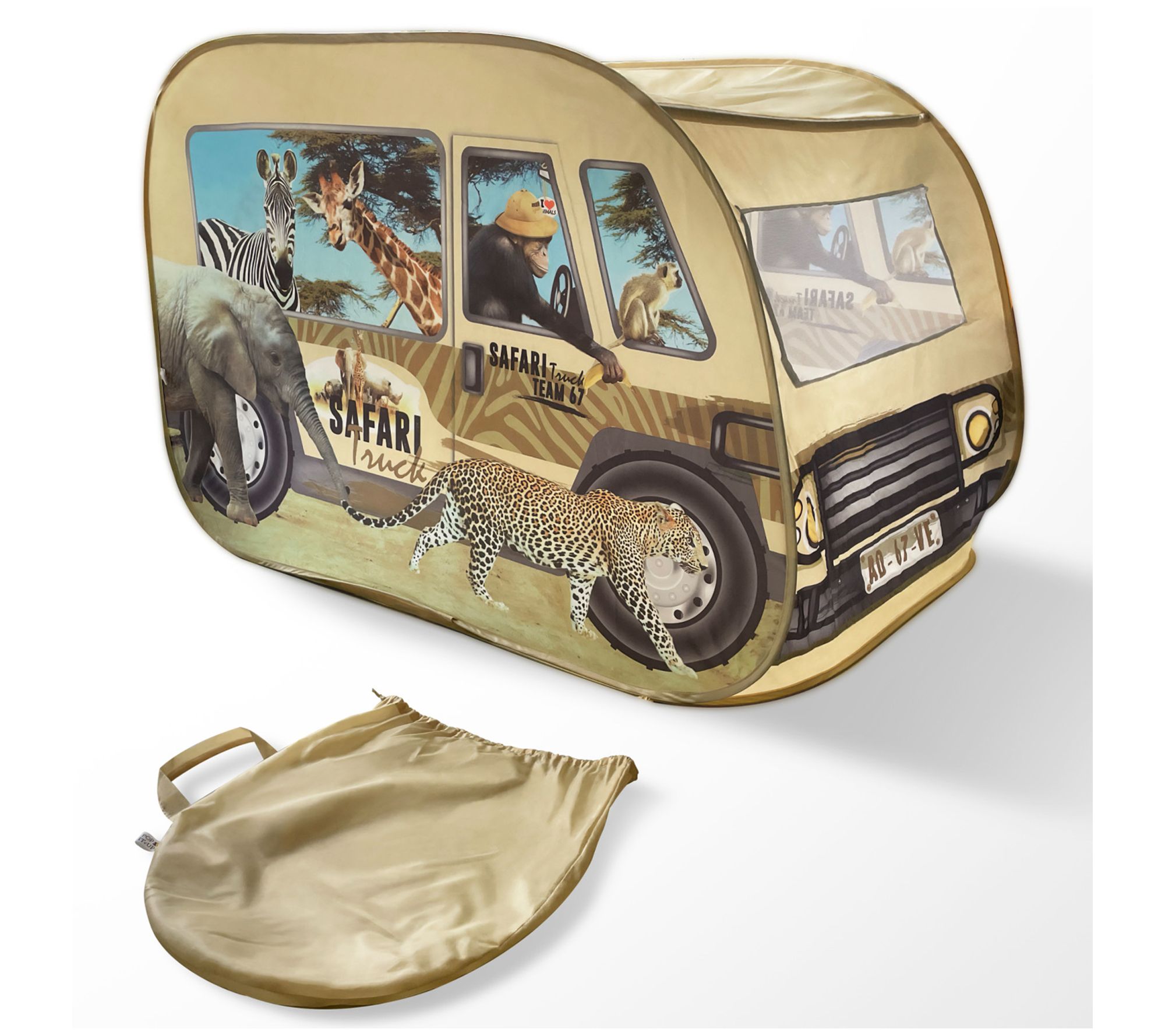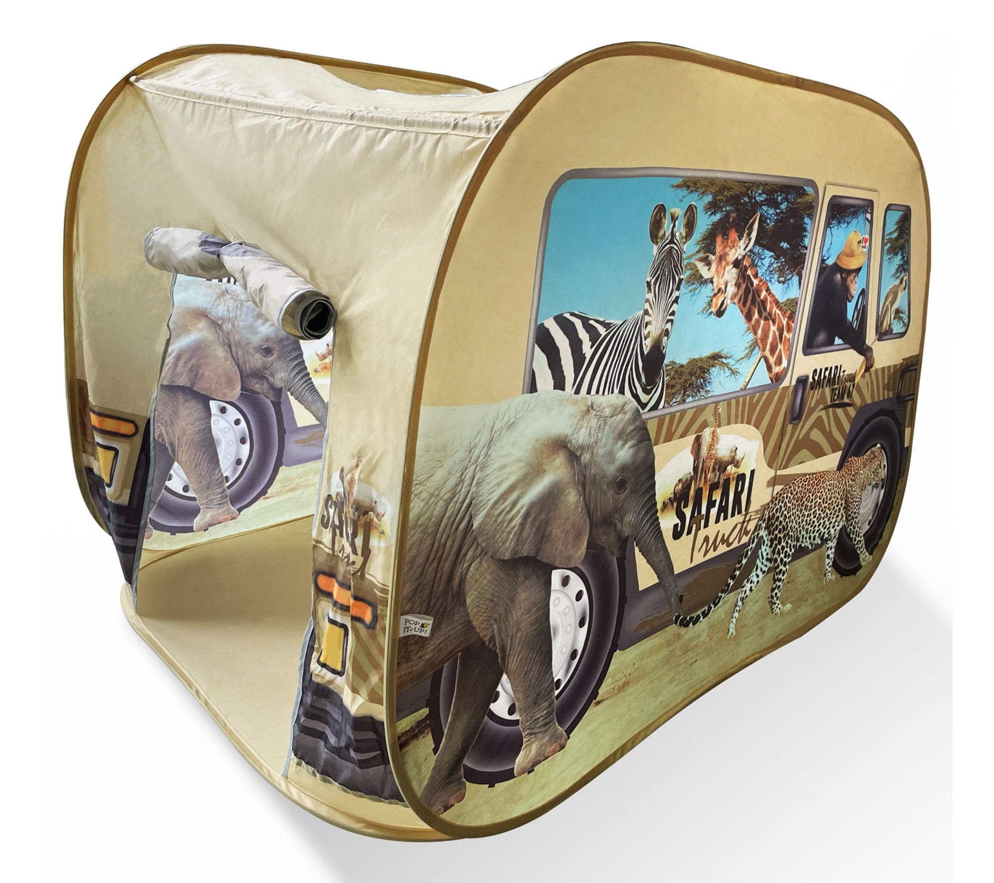 Your little explorers can embark on exciting safari adventures with the Pop It Up Safari truck tent! It's easy to set up and features a unique, fun print with a front window and roof opening, perfect for imaginative play. Whether indoors or outdoors, children will enjoy hours of fun with this nifty tent. From Pop It Up.