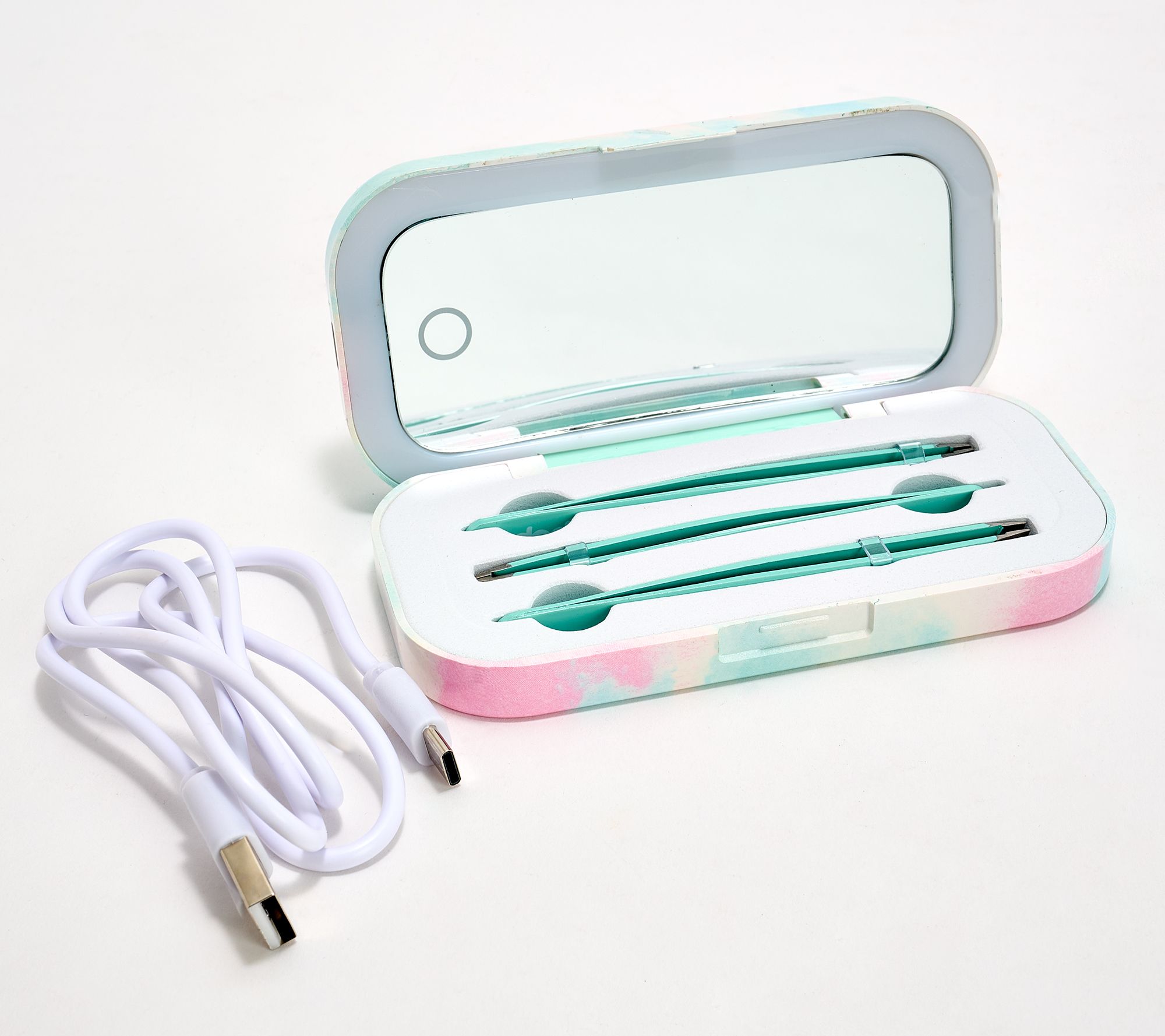 Pop Sonic Set of 3 Stainless Steel Tweezers & LED Mirror Case