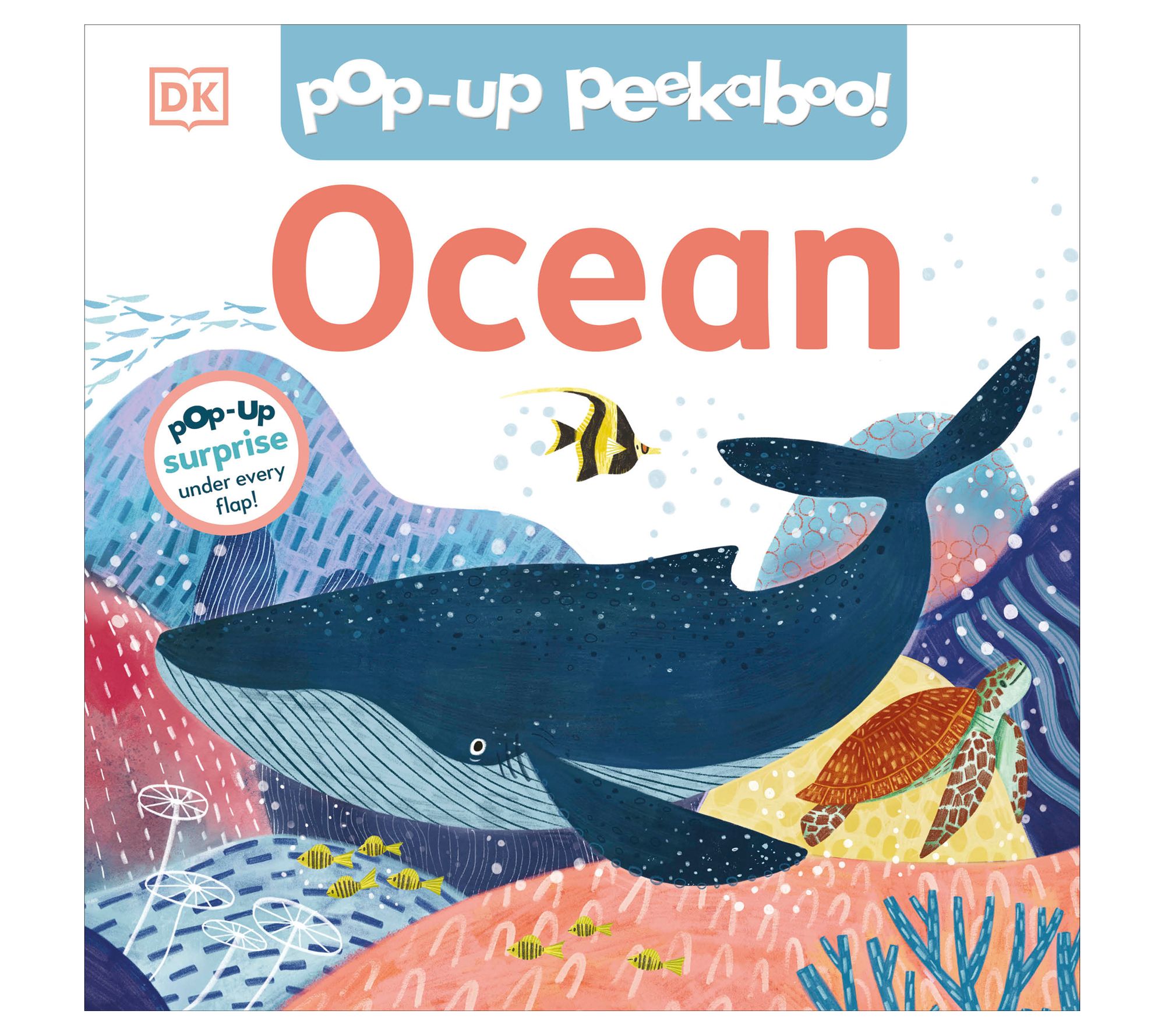 Discover the wonders of the ocean with Pop-Up Peekaboo! Ocean by DK. This engaging hardcover book allows babies and toddlers to lift big flaps and find five delightful peekaboo surprises, introducing them to various underwater habitats. The lively rhymes and vibrant pop-up scenes make learning about marine life fun and interactive.