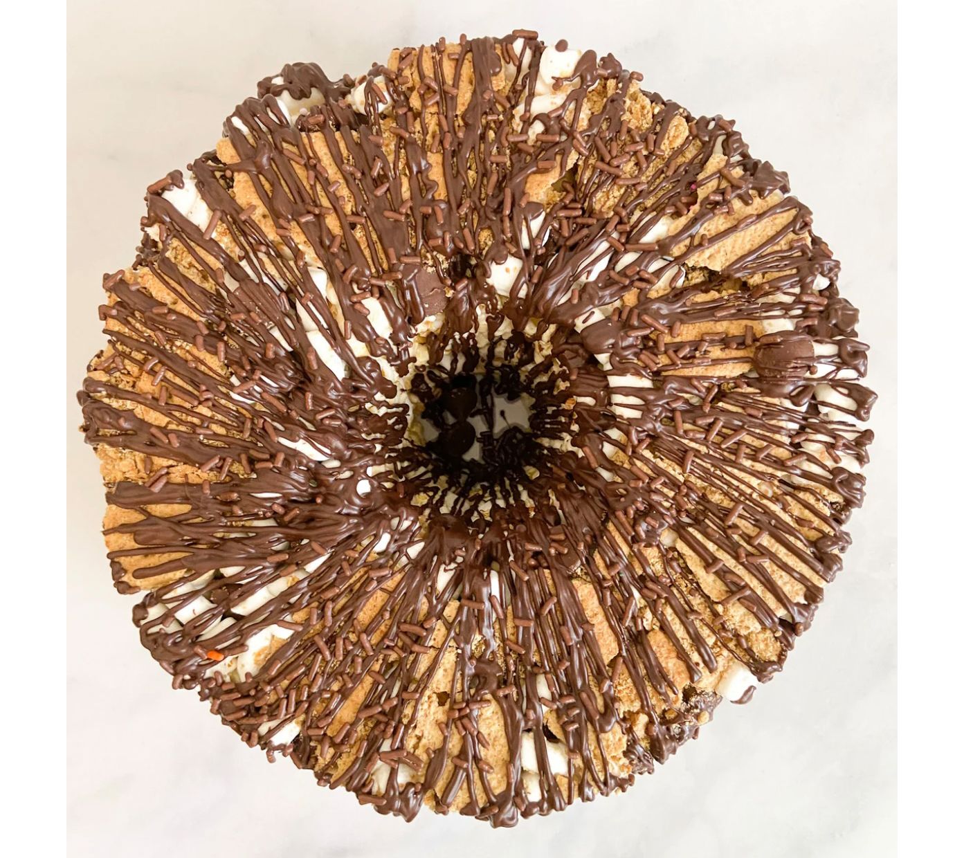 • Drizzled with dark chocolate sauce and chocolate sprinkles