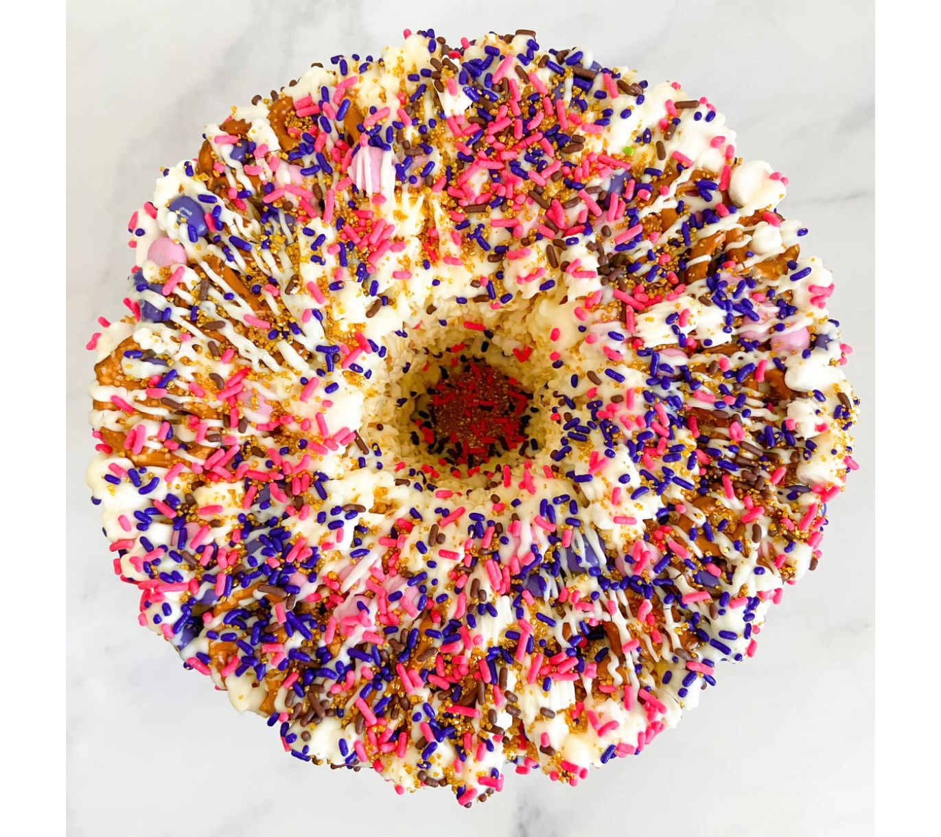 Experience a birthday celebration in every bite with the Popilicious Unicorn Gourmet Popcorn Cake. Two layers of freshly popped, salted gourmet popcorn are smothered in homemade marshmallow fluff, pretzels, and mini marshmallows, all crowned with pink and purple M&MS and sprinkles. It's a chewy, magical treat that's sure to delight anyone with a sweet tooth. From Popilicious.