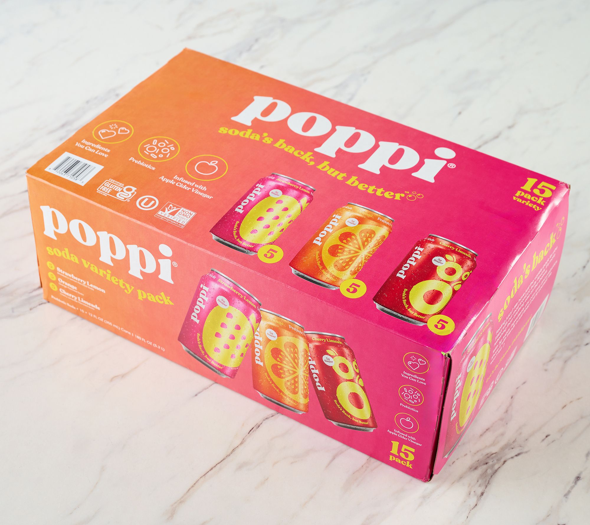 Looking for a flavorful and fizzy way to quench your thirst? This fruity soda variety pack brings together three lively flavors -- Cherry Limeade, Orange, and Strawberry Lemon -- all with just 5g sugar and 25 calories per can. Grab a chilled can for a refreshing pick-me-up that fits right into your day, anytime you crave something bubbly. From Poppi.