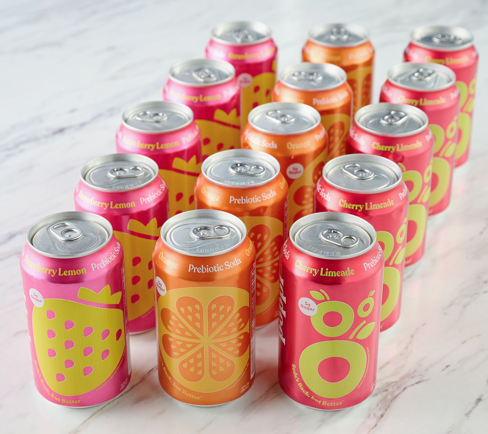 • Includes fifteen 12-fl oz cans: five each of Cherry Limeade, Orange, and Strawberry Lemon