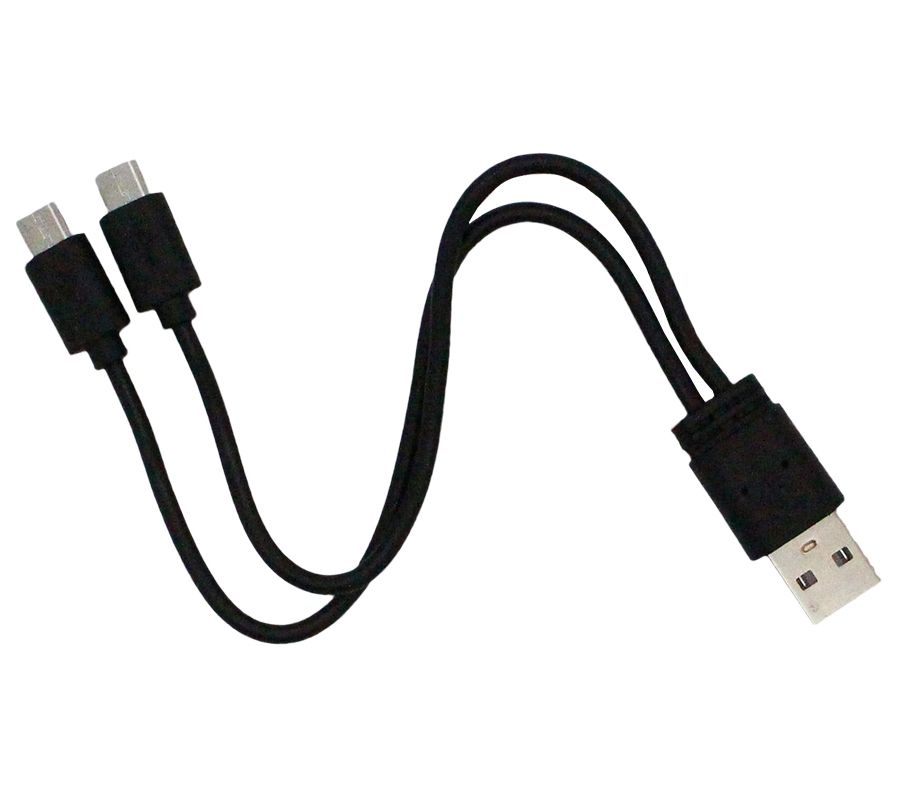Includes four rechargeable AA lithium-ion batteries, two USB-A to dual micro USB charging cables, and 2.4A wall charger