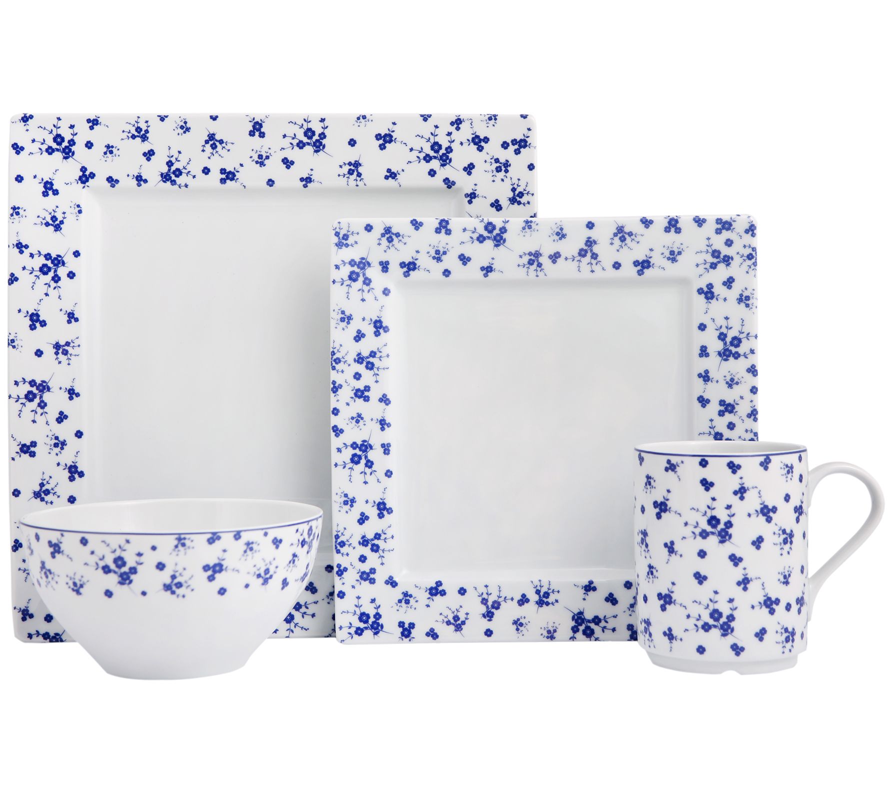 • Includes dinner plate, flat plate, bowl, and mug