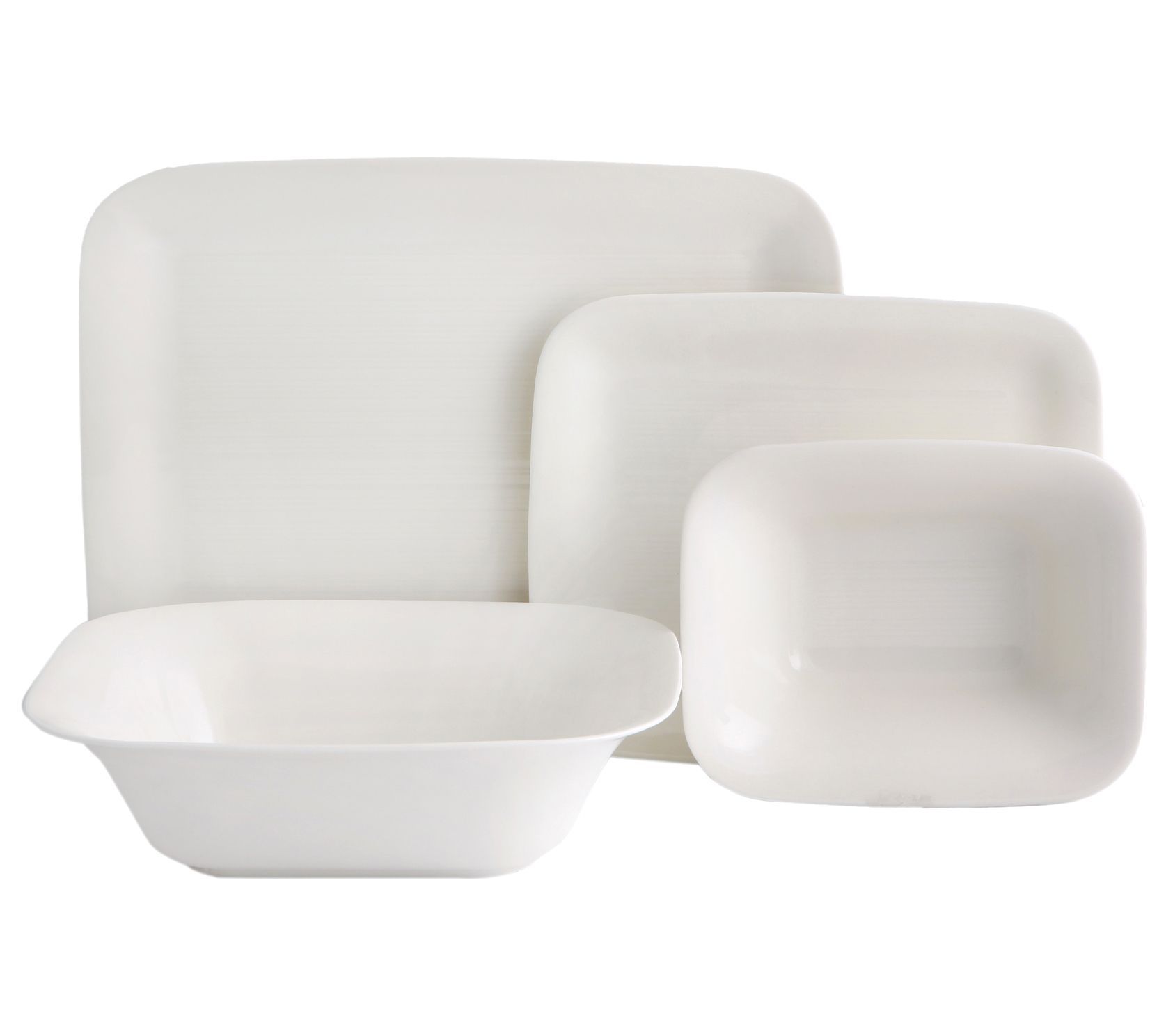• Includes dinner plate, flat plate, bowl, and salad bowl