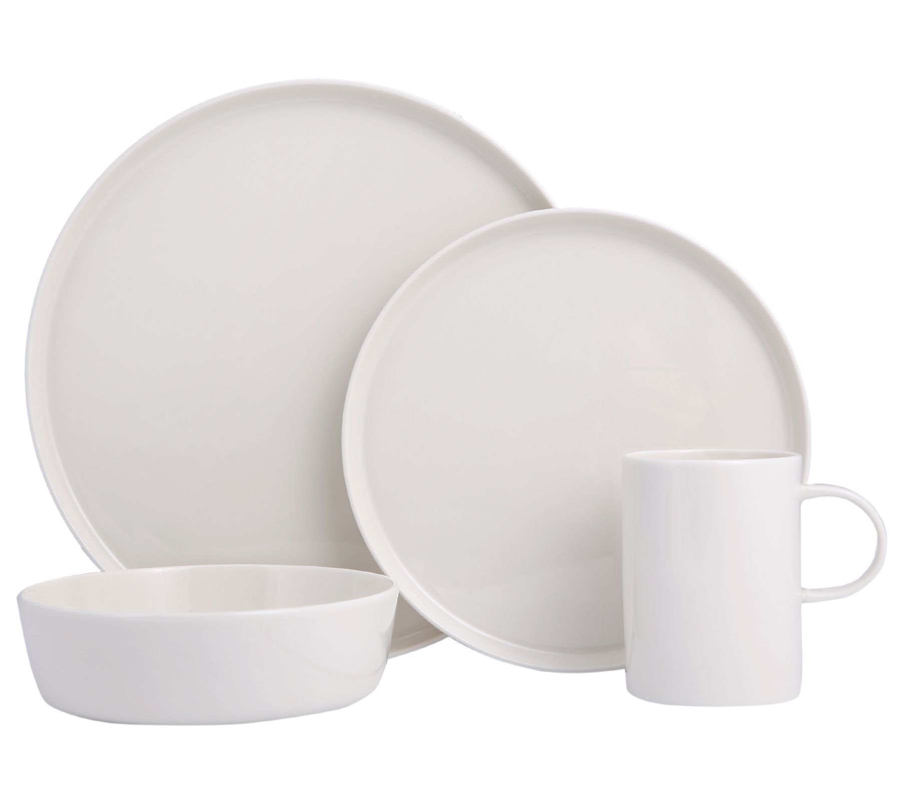 • Includes dinner plate, flat plate, bowl, and 10.82-oz mug