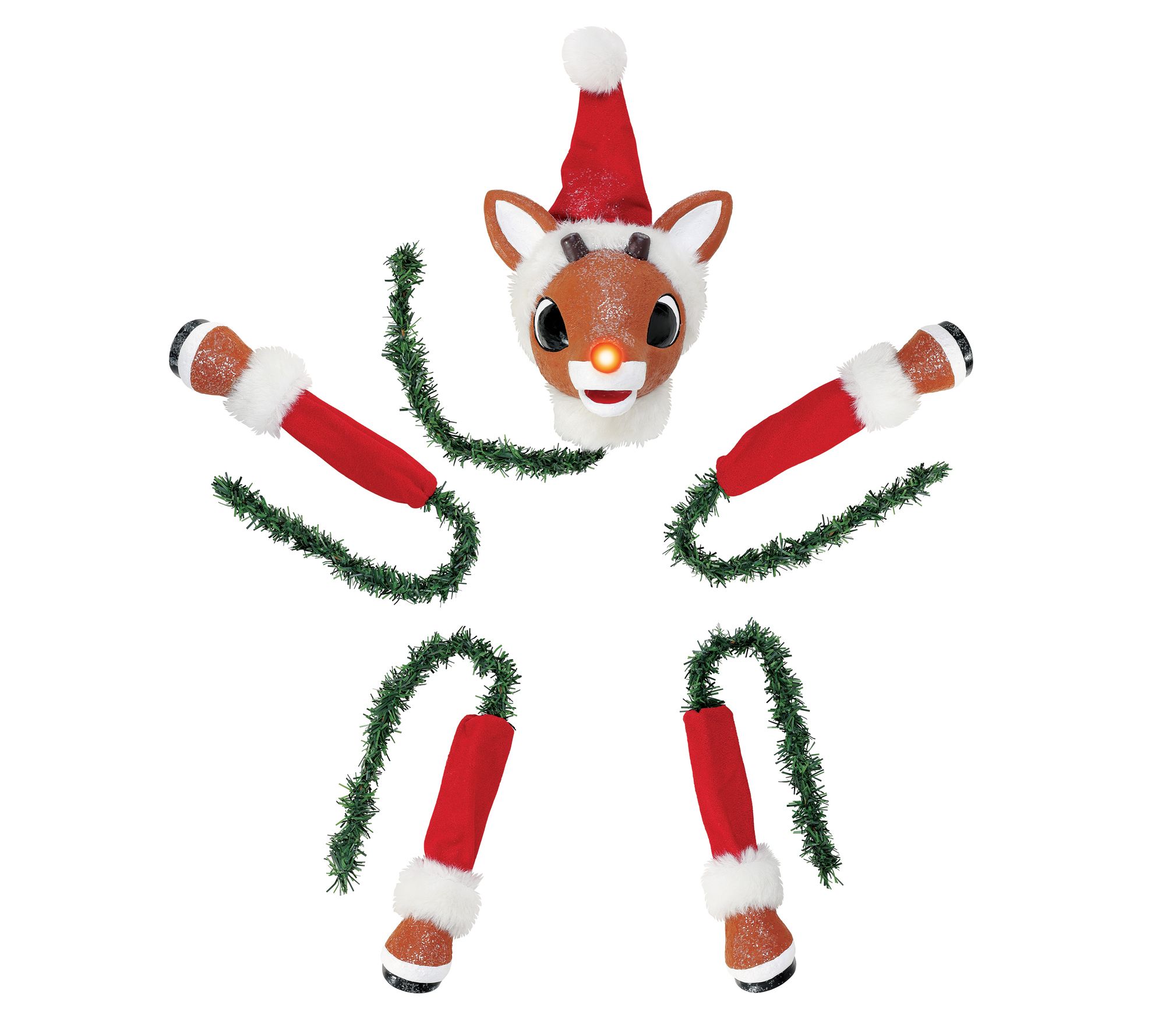 Let a favorite holiday character take center stage in your living room when you use this clever topper set. Each piece attaches directly to your tree, instantly transforming your evergreen into a whimsical Rudolph for everyone to enjoy. Create a playful focal point that sparks laughter and nostalgia during family gatherings. From Possible Dreams.