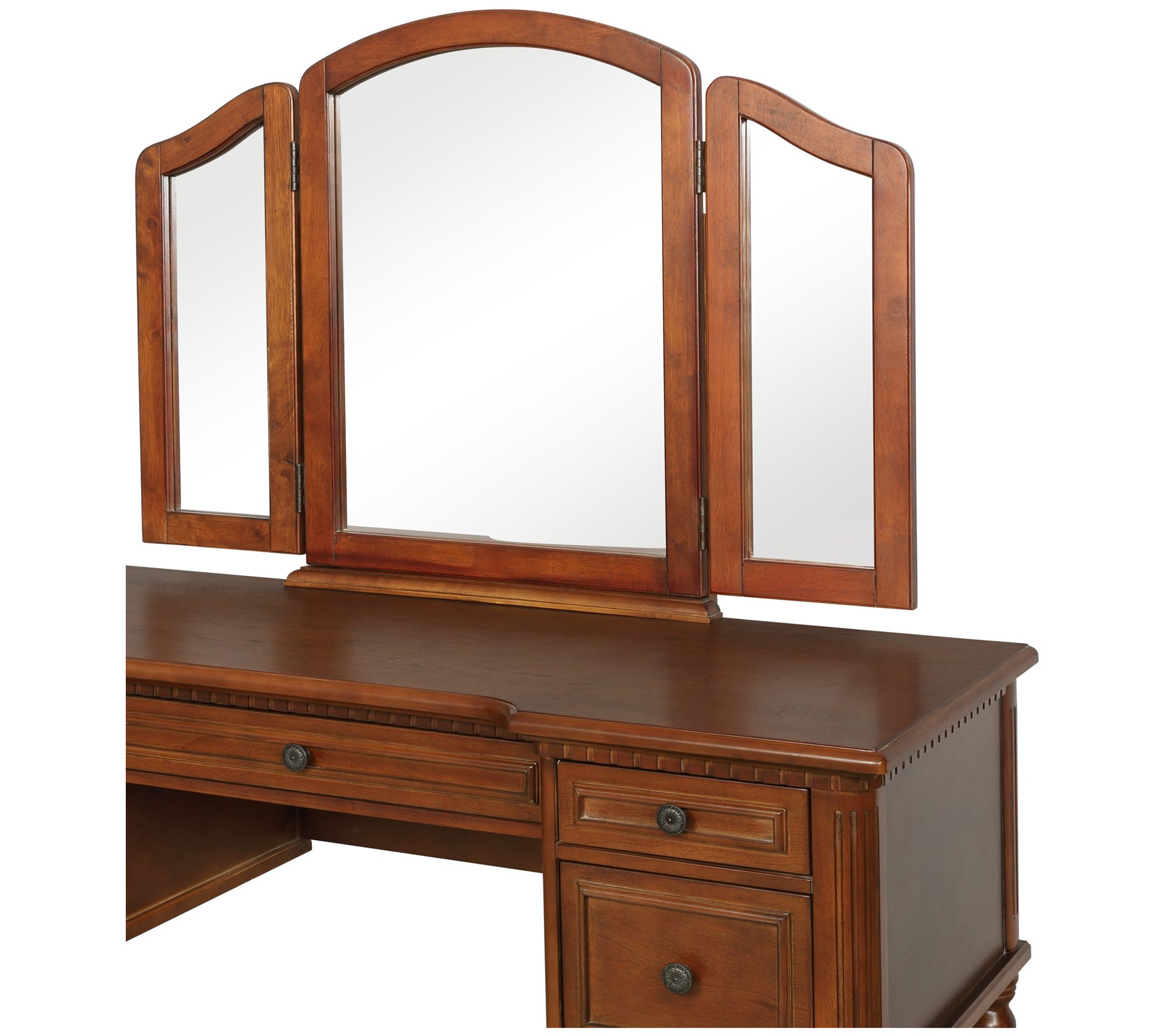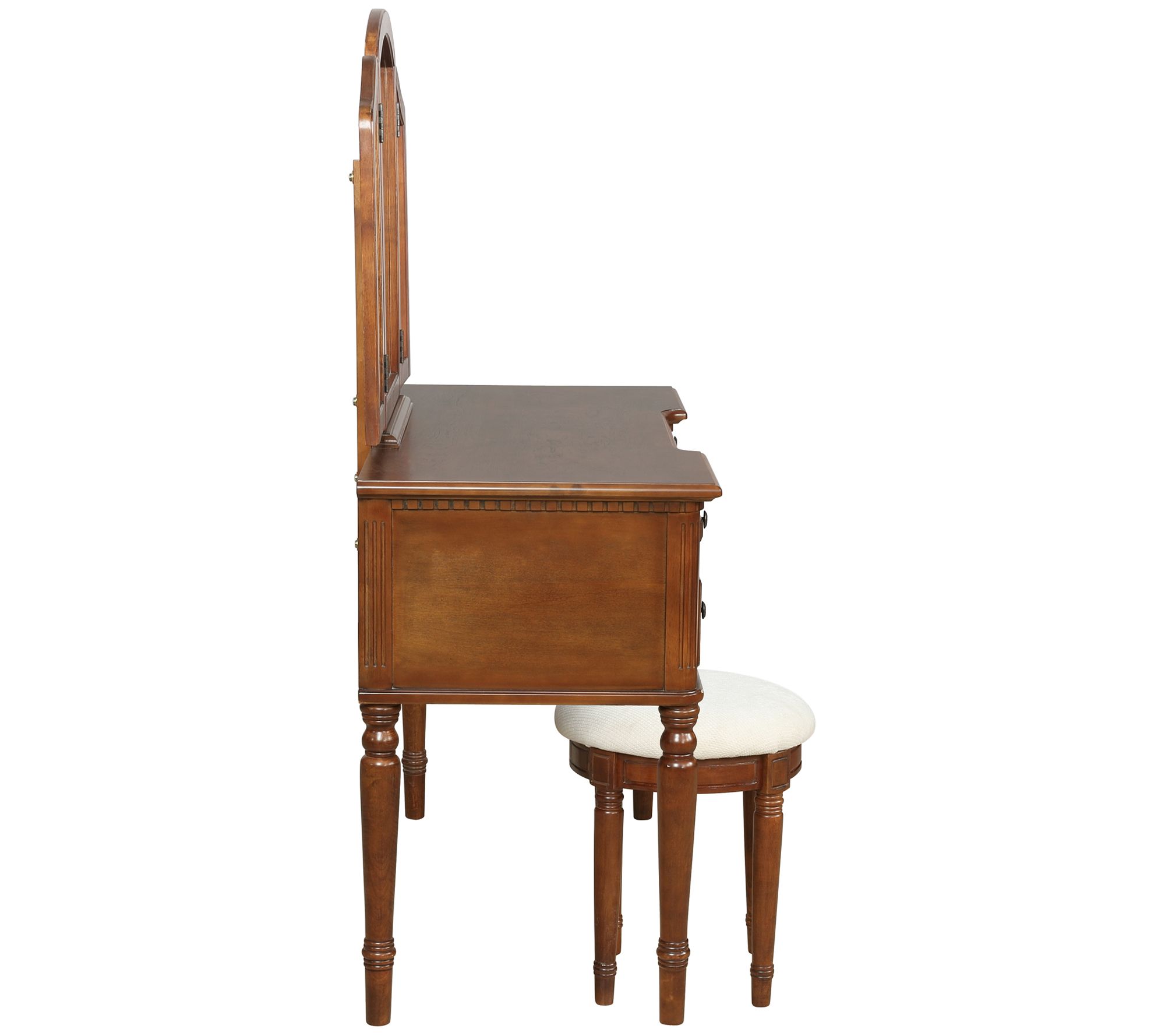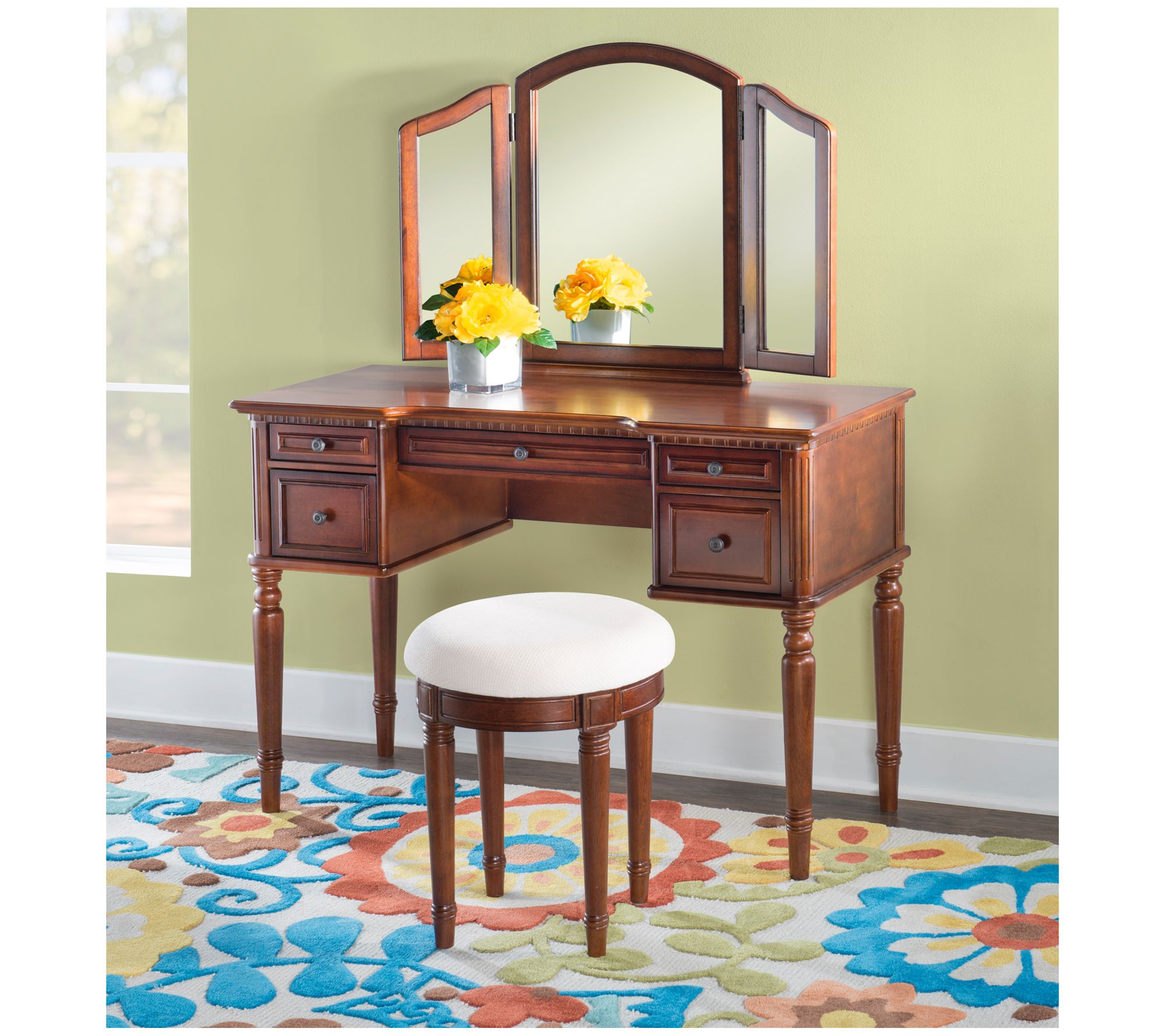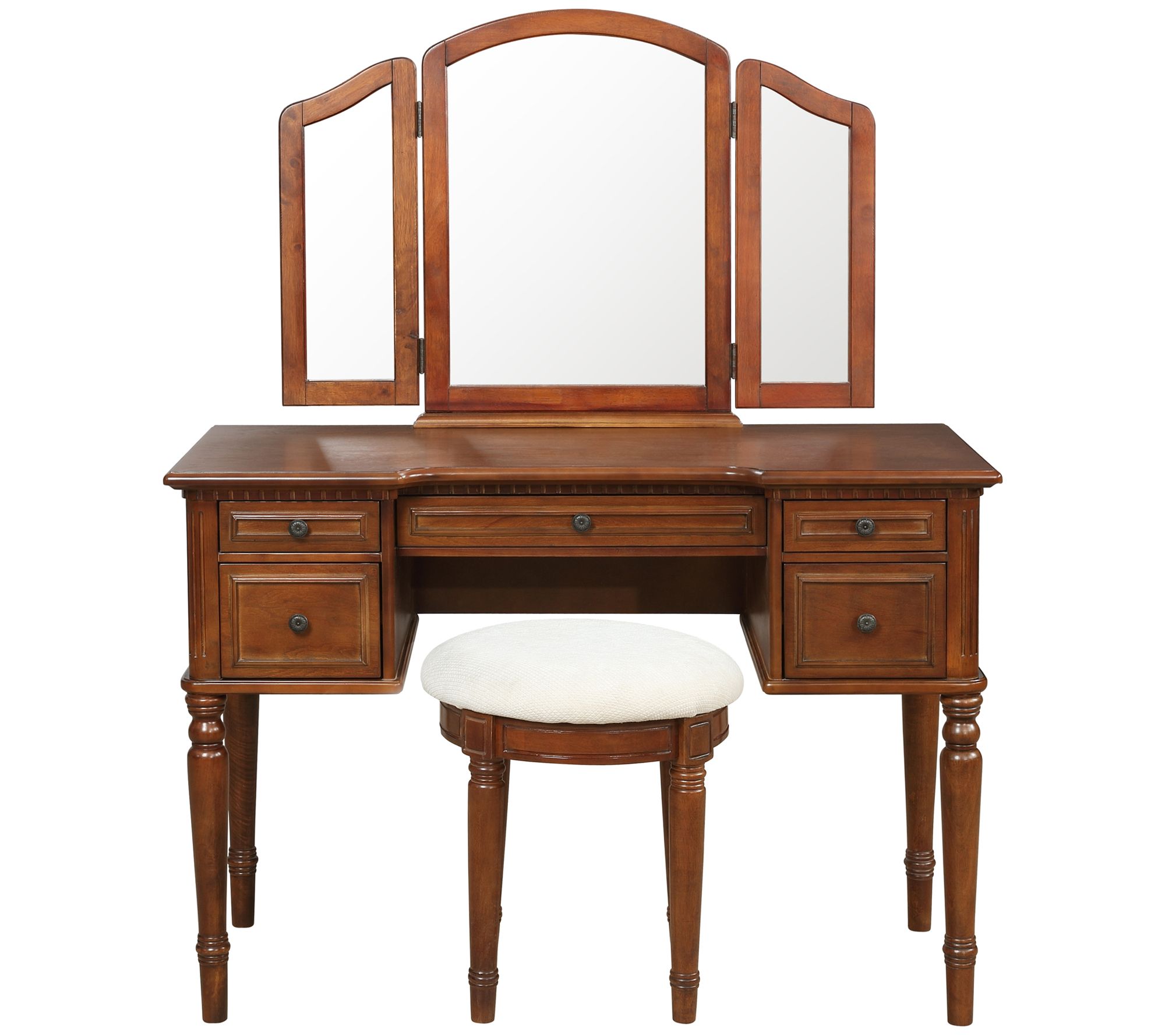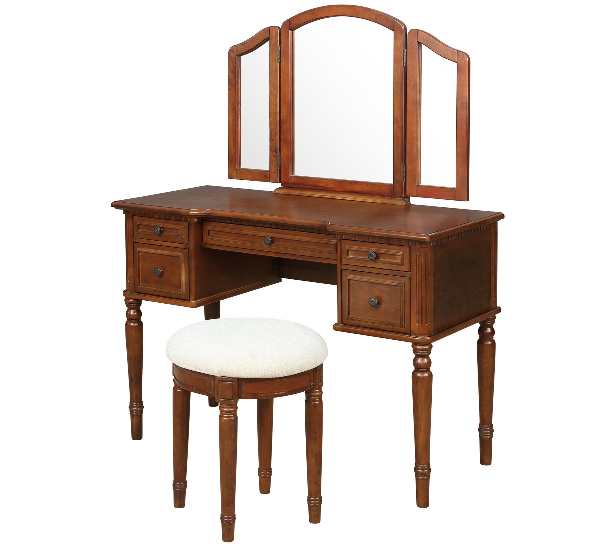 • Includes vanity with tri-fold mirror and stool
