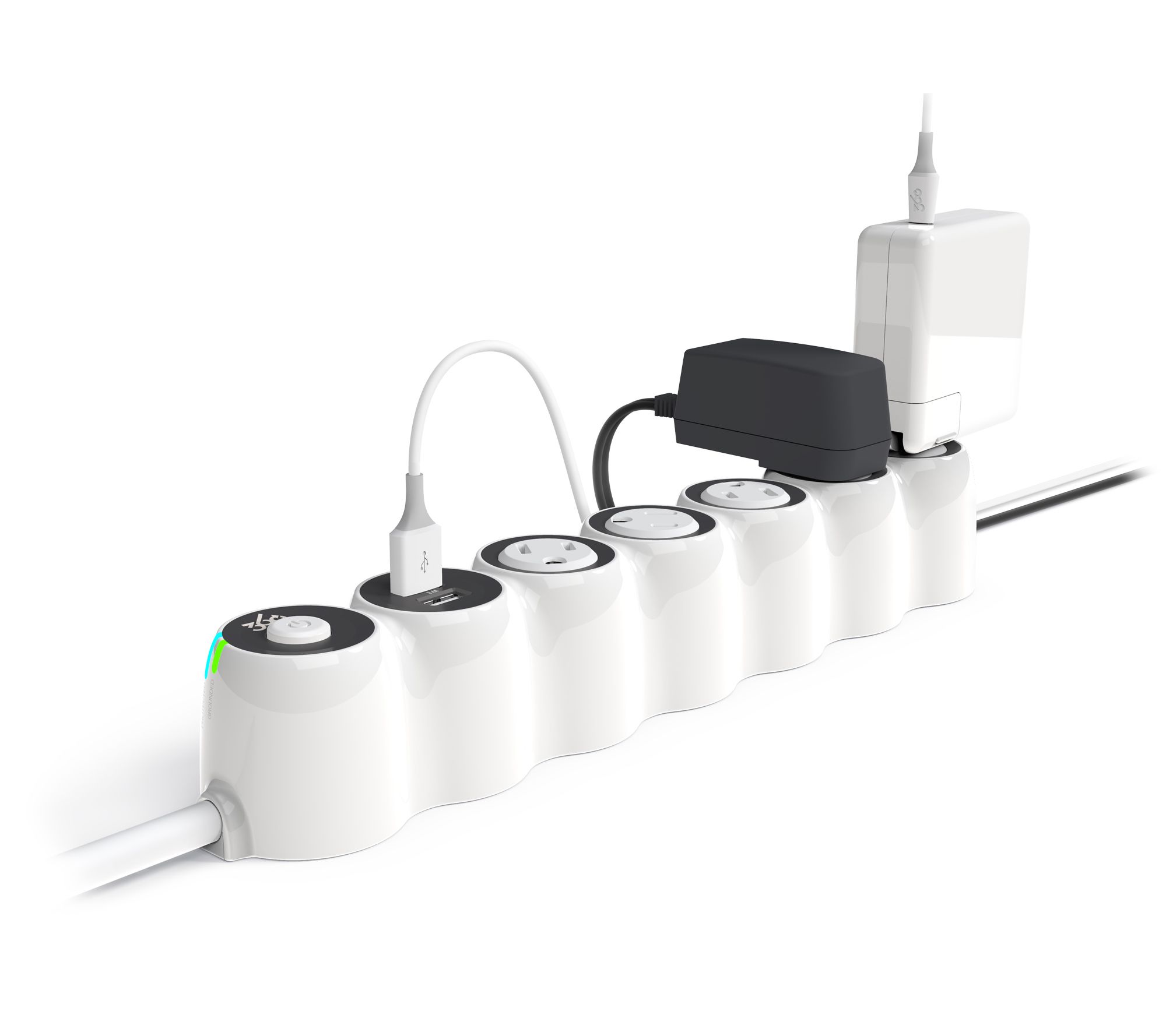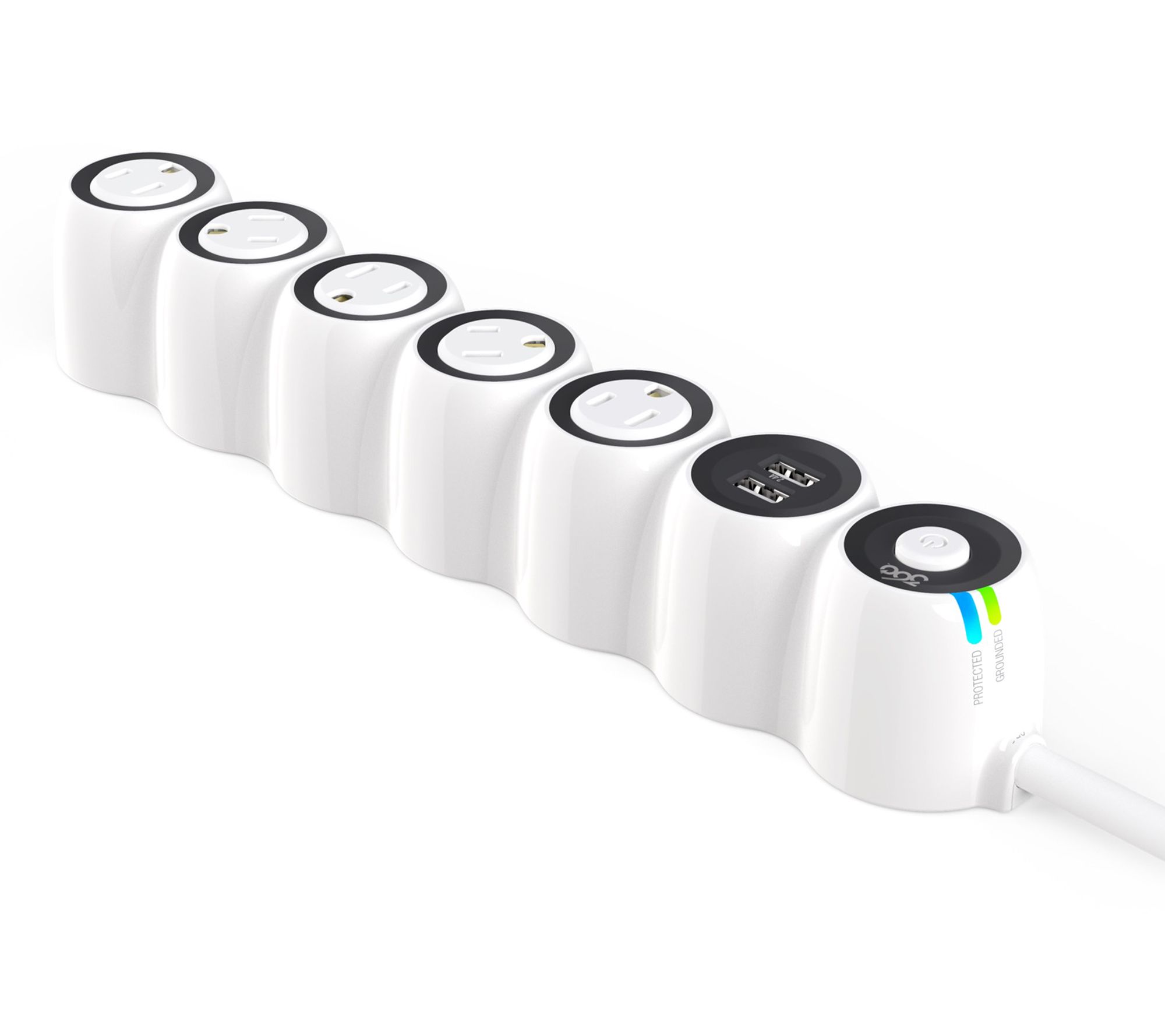 • Five 360-degree rotating outlets