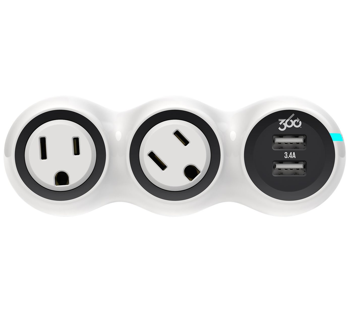 PowerCurve Mini 2-Outlet Rotating Tap w/ 2-PortUSB