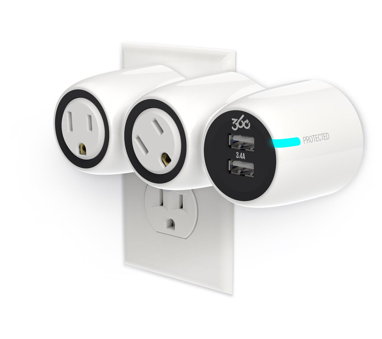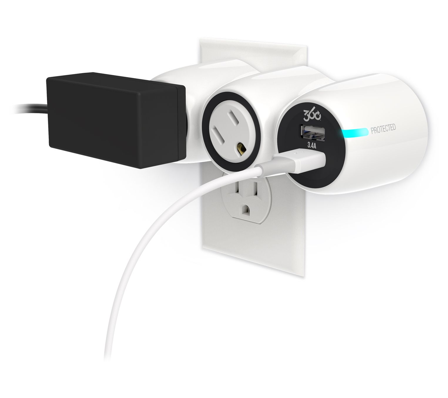 • Two 360-degree rotating outlets