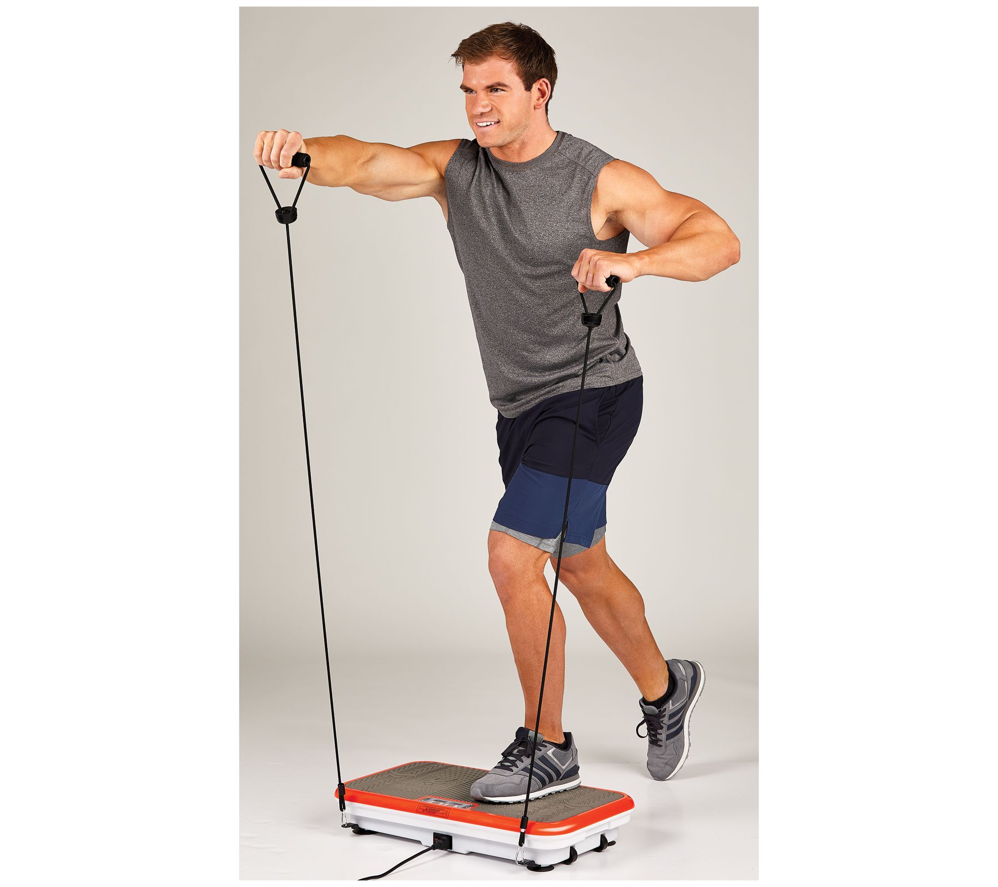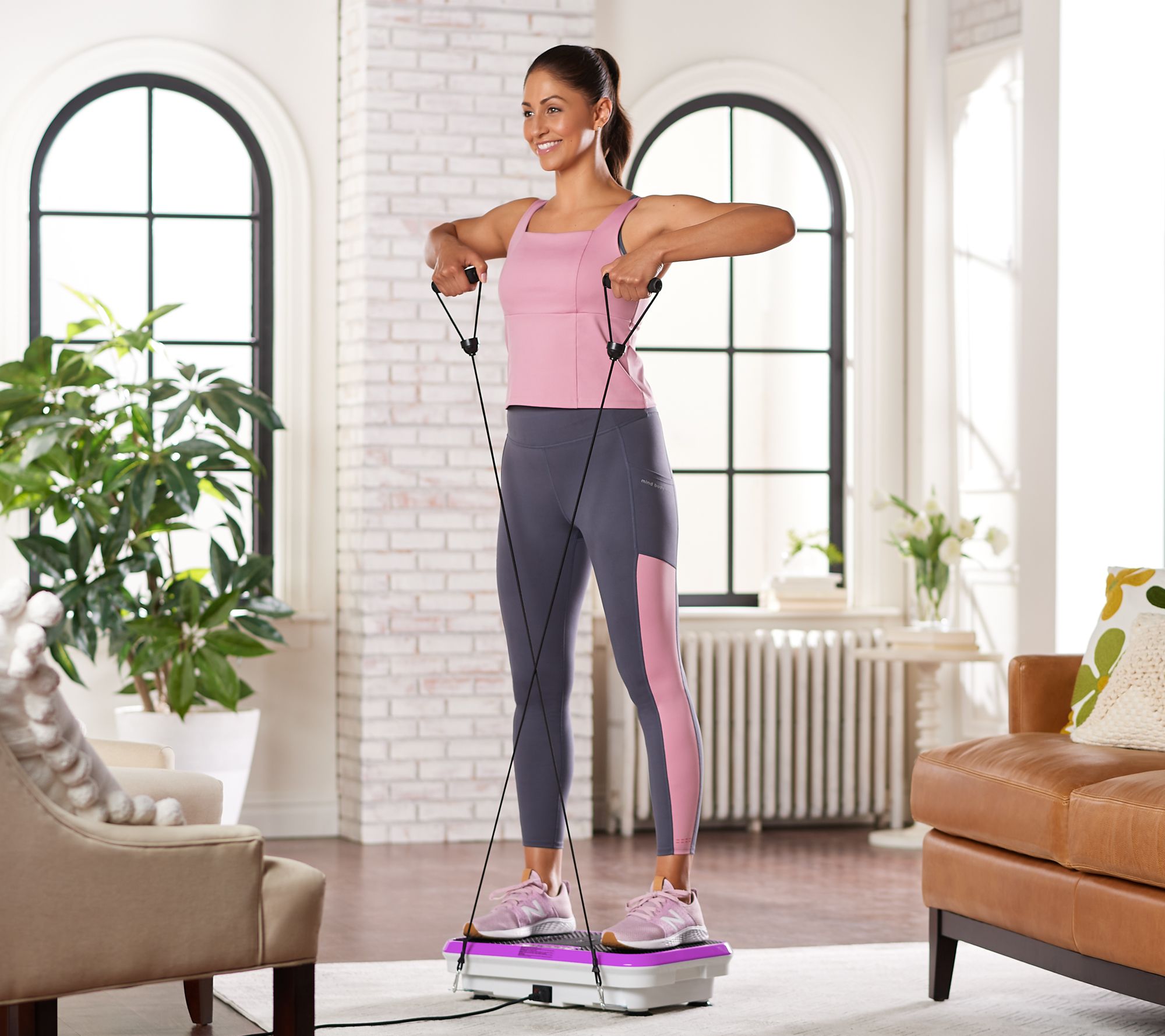 • Includes vibration platform, two loop resistance bands, three additional tube resistance bands, workout guide, meal plan booklet, remote, and mat