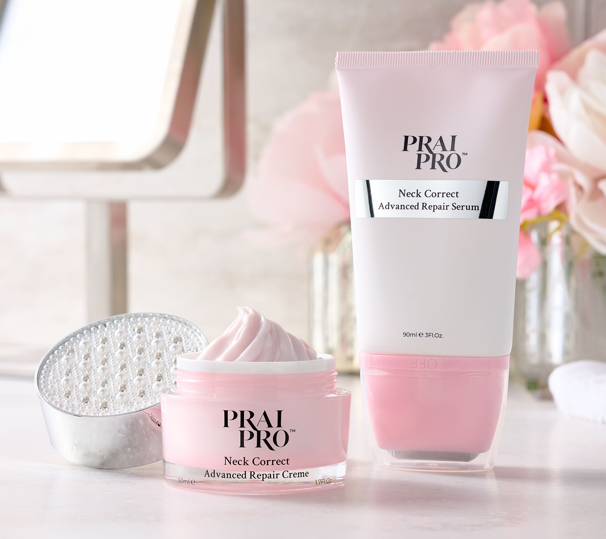 Take your neck routine to the next level with this dynamic duo from PRAI PRO. Formulated to address the visible signs of aging on the delicate neck and decolletage, the serum and creme help boost hydration of the skin with WONDERAGE, while addressing fine lines and wrinkles through moisturization with AGEFINITY.