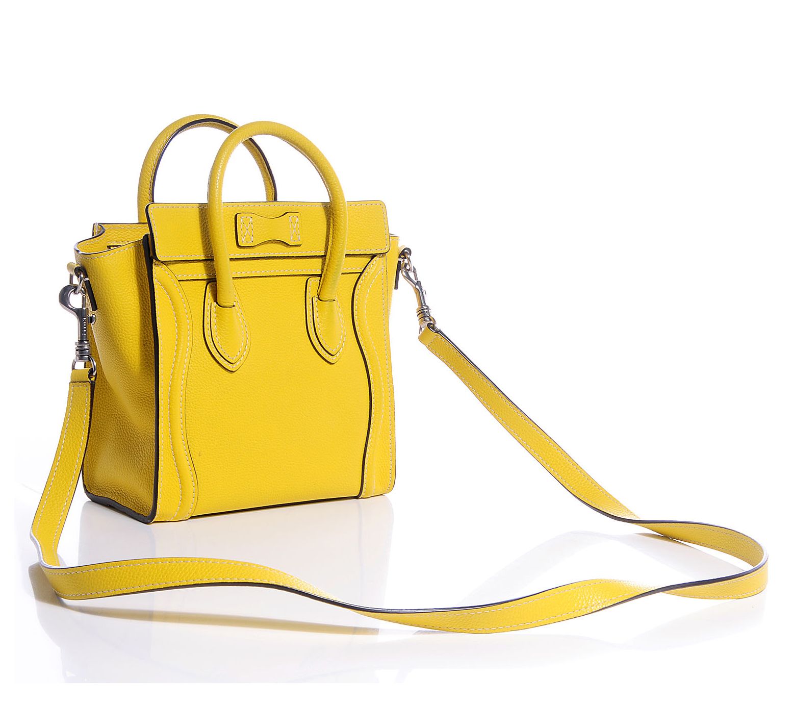 This pre-owned tote brings chic design and versatility to any day, whether you're exploring the city or meeting friends for weekend brunch. Sleek drummed leather, a bold yellow hue, and practical details like double handles and a detachable strap make it easy to take this icon everywhere. From Celine.