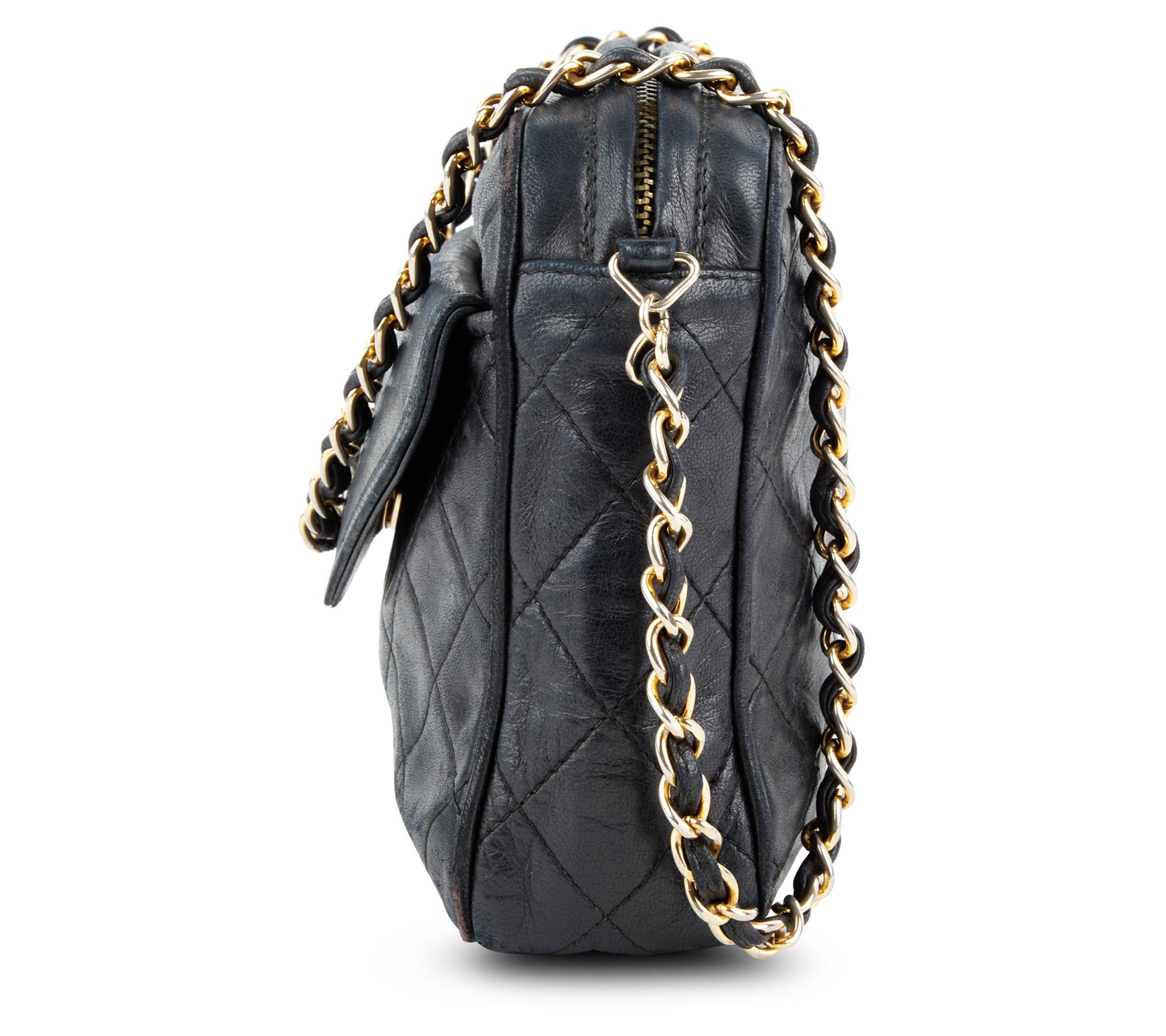 It's the rich details like CC embossing, a quilted texture, and a lustrous chain strap that make this pre-owned Flap camera bag the picture of sophistication. From Chanel.