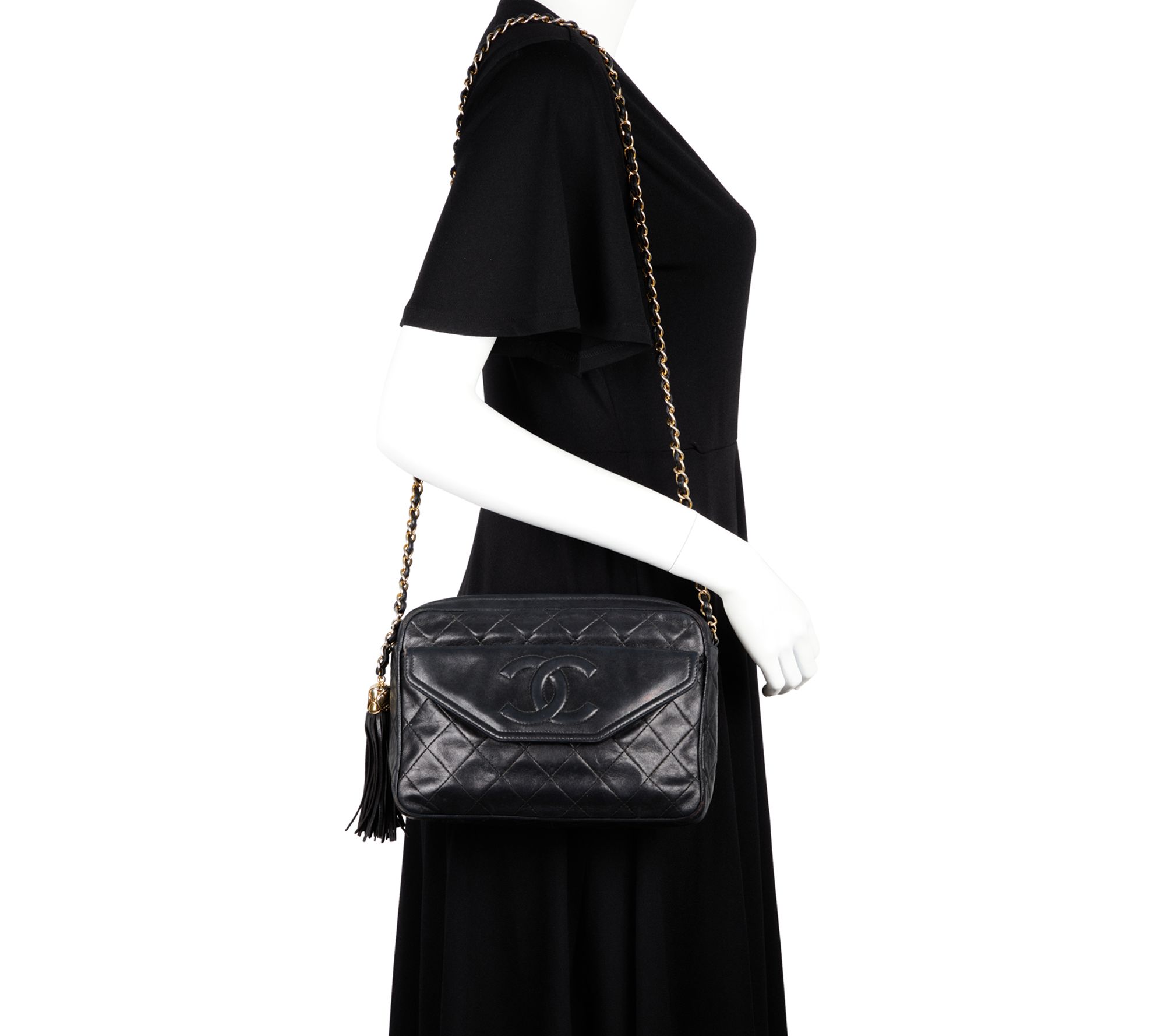 Pre-Owned Chanel CC Flap Tassel Black LambskinCamera Bag