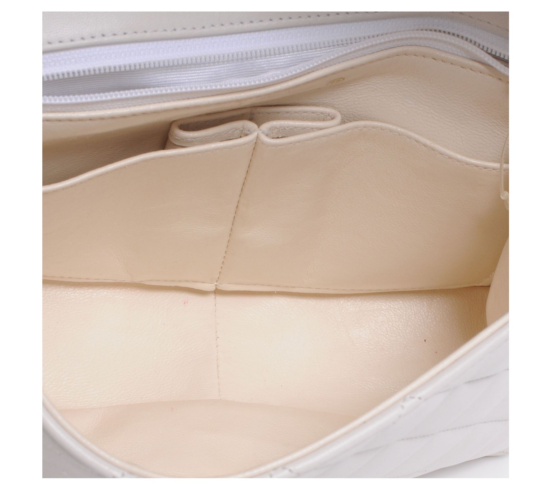Lined interior, two slip pockets and one zipper pocket