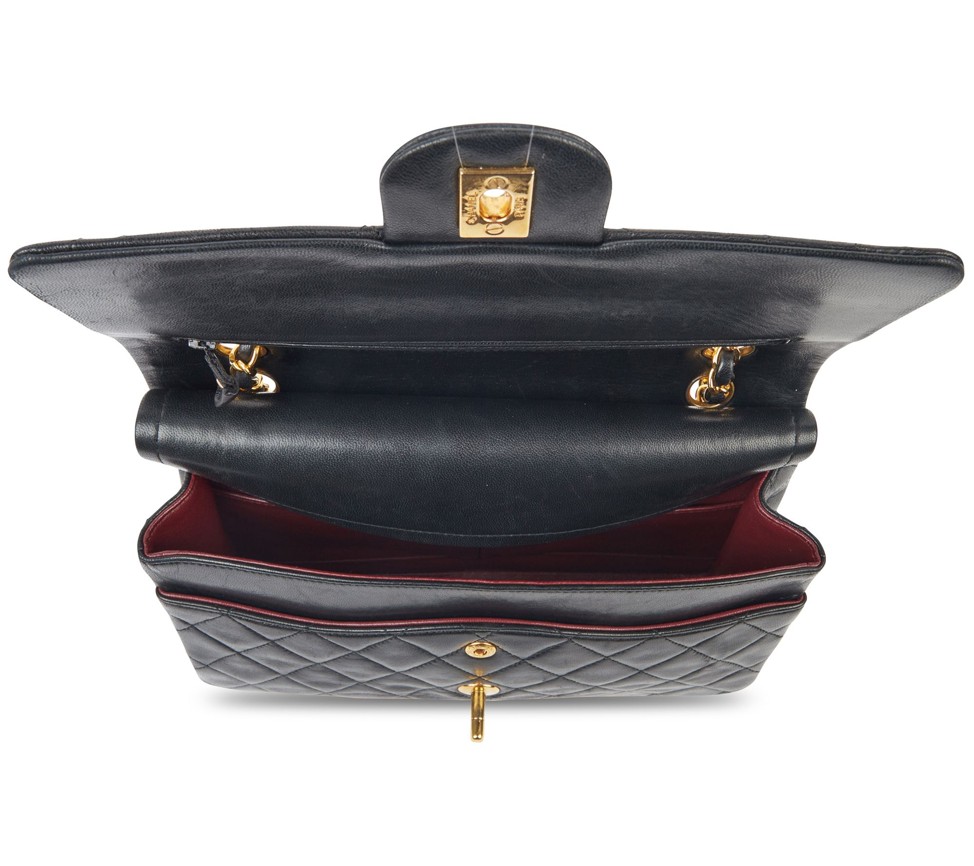 • Twist lock closure, adjustable chain strap, goldtone hardware