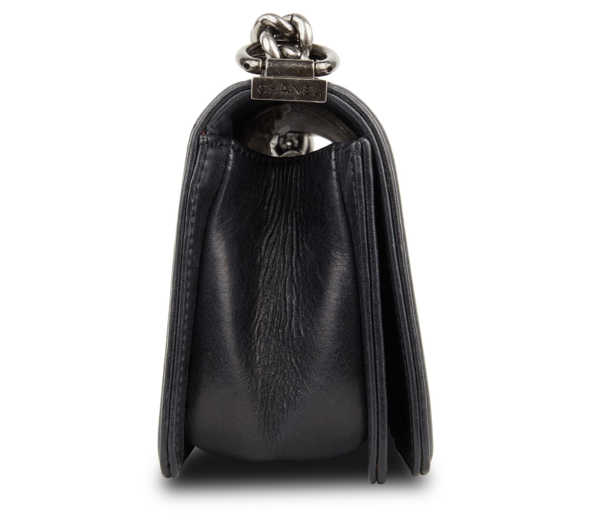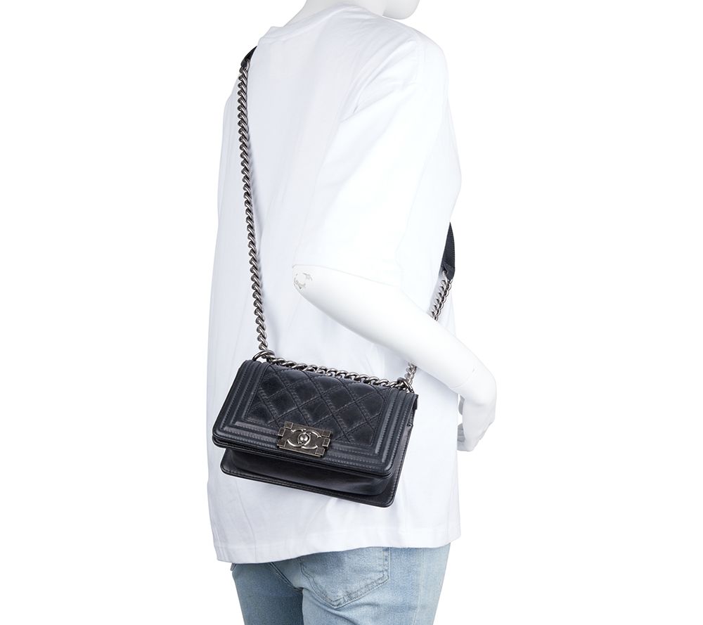 Wear your good taste on your shoulder with this pre-owned Black Wild Stitch Boy Bag featuring an iconic logo accent and convenient crossbody strap for hands-free convenience when on the go. From Chanel.