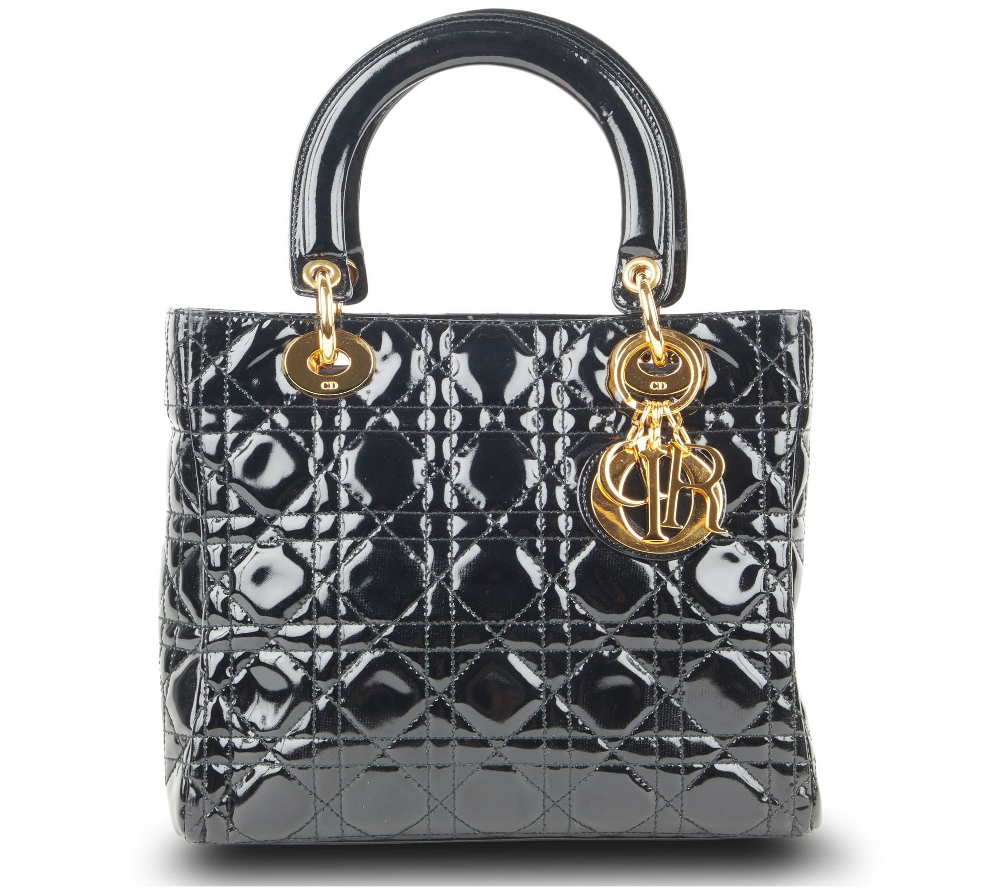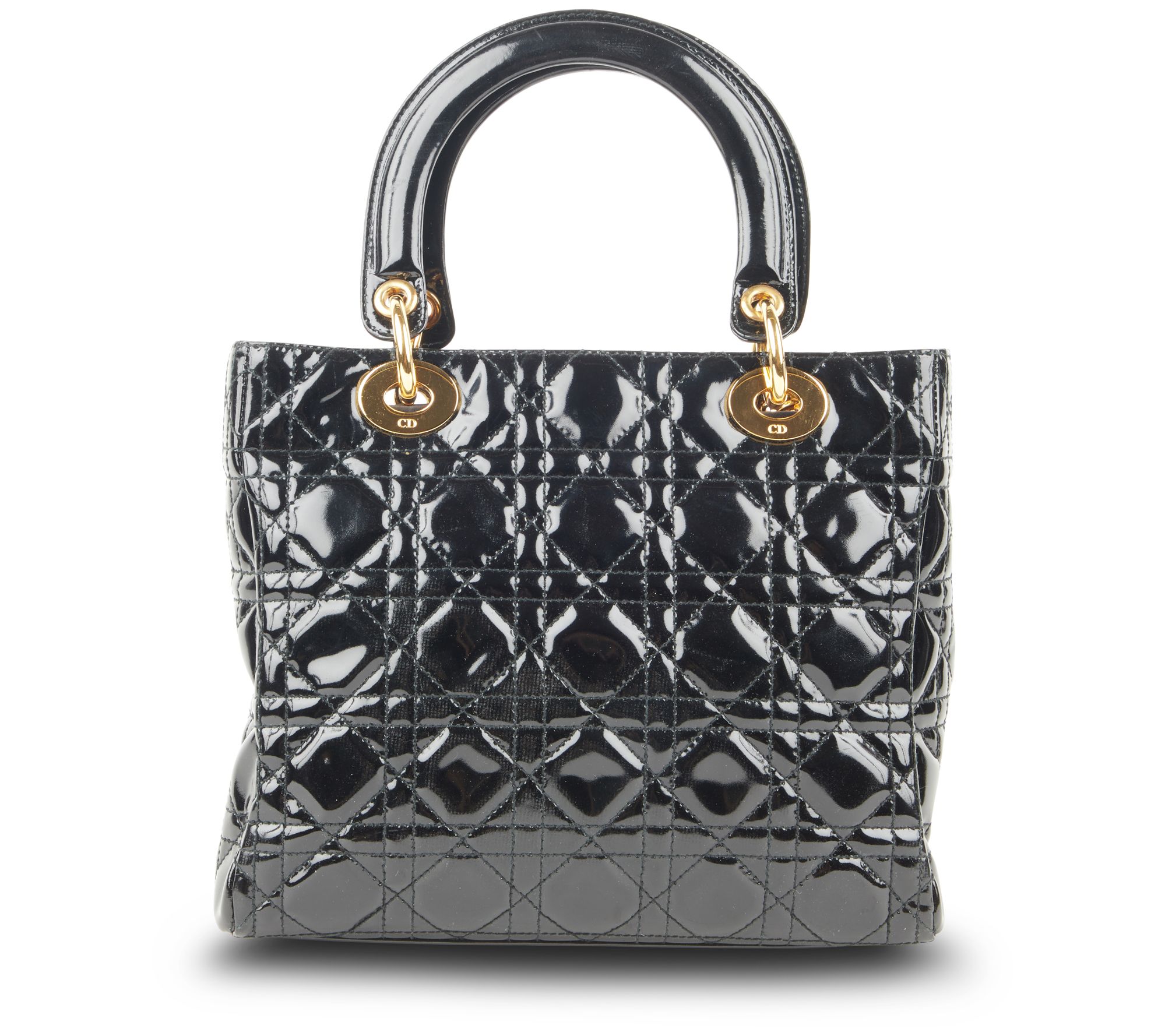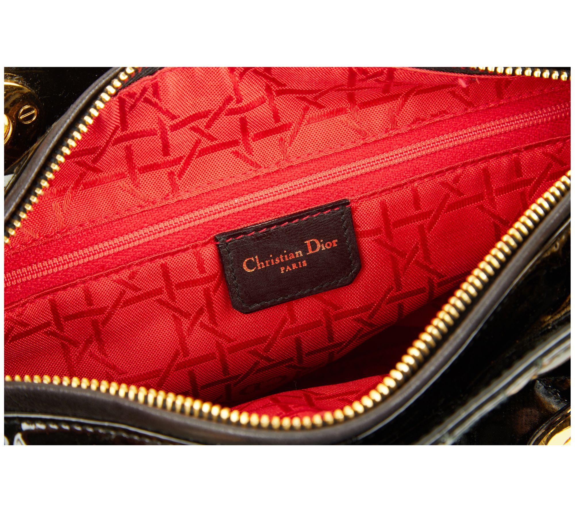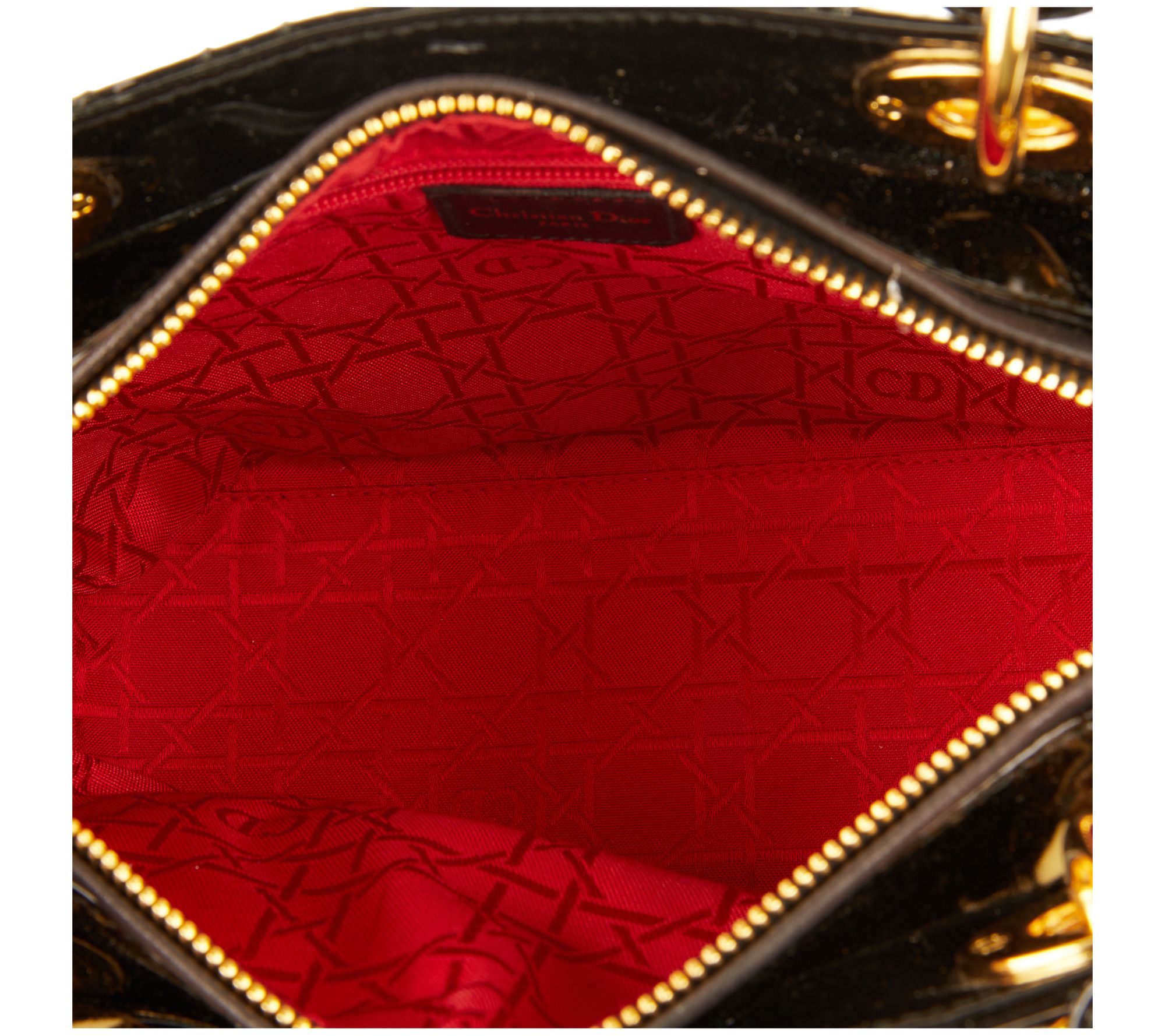 Zip top closure, Cannage topstitching, D.I.O.R. charms, double handles, goldtone hardware