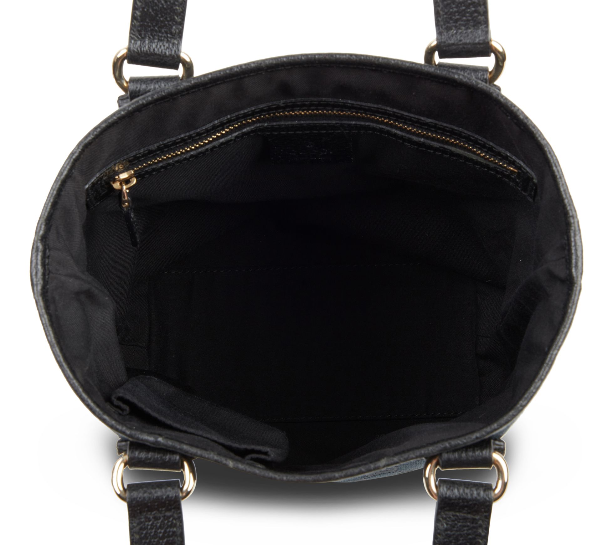 • Open top, double handles, goldtone hardware