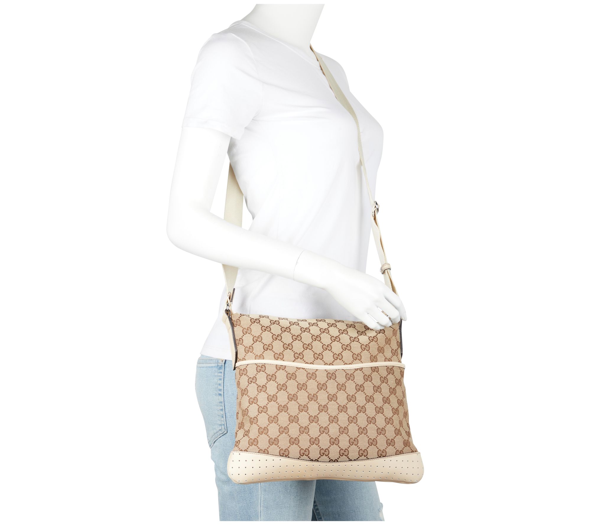 Pre-Owned Gucci Crossbody Bag GG White Canvas