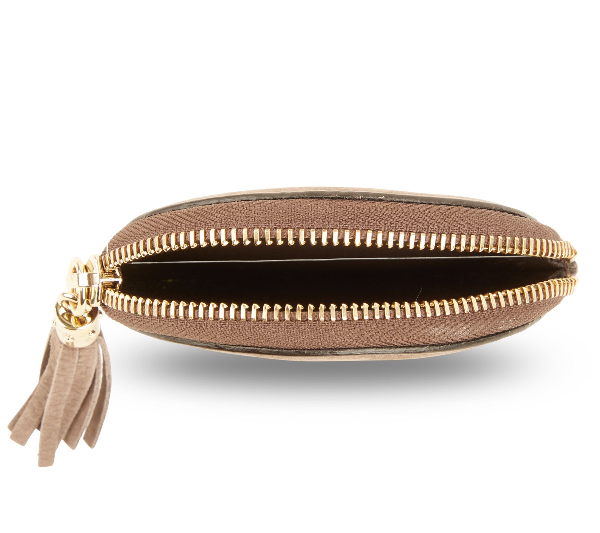 • Zippered closure, goldtone hardware, lined interior