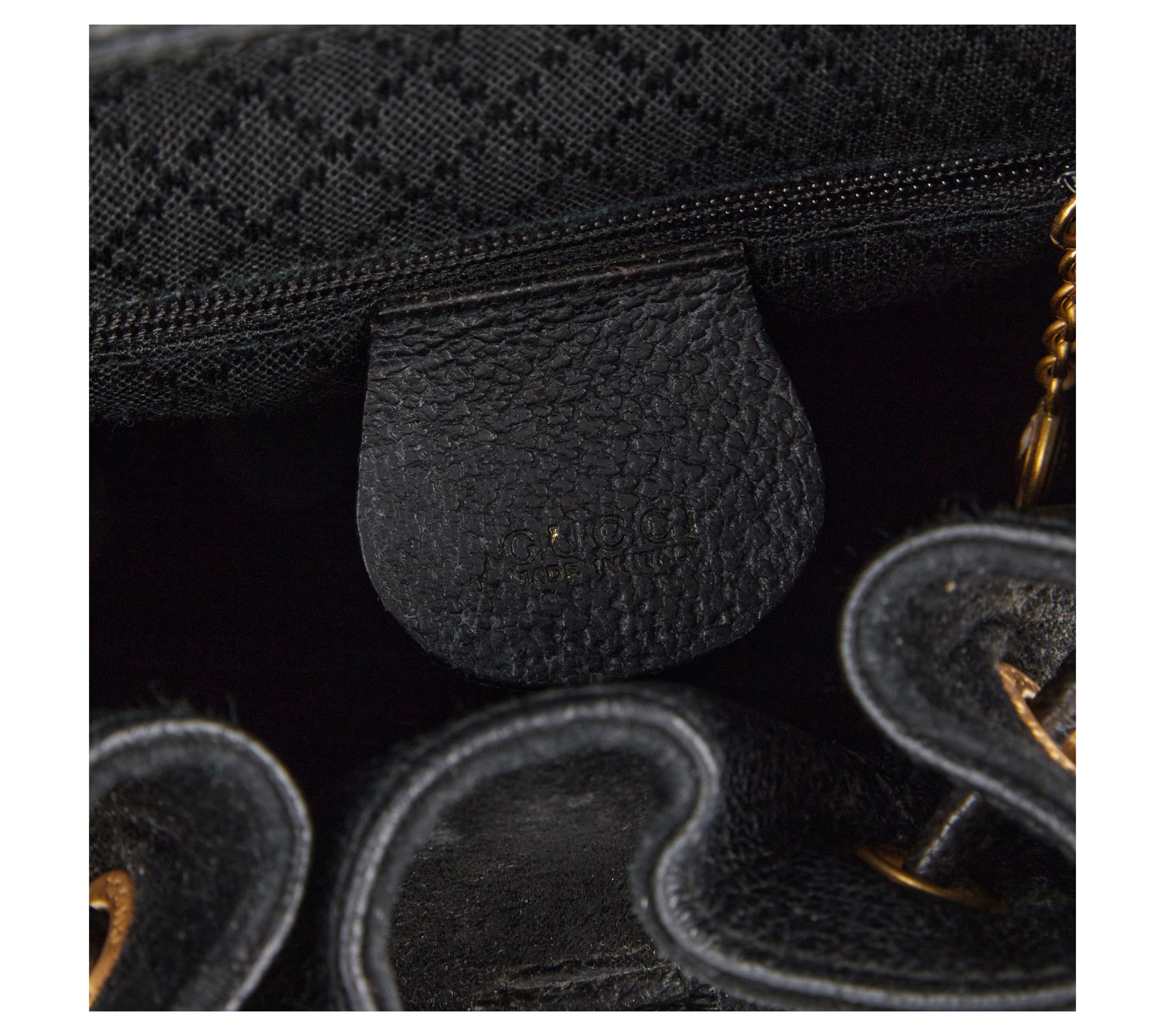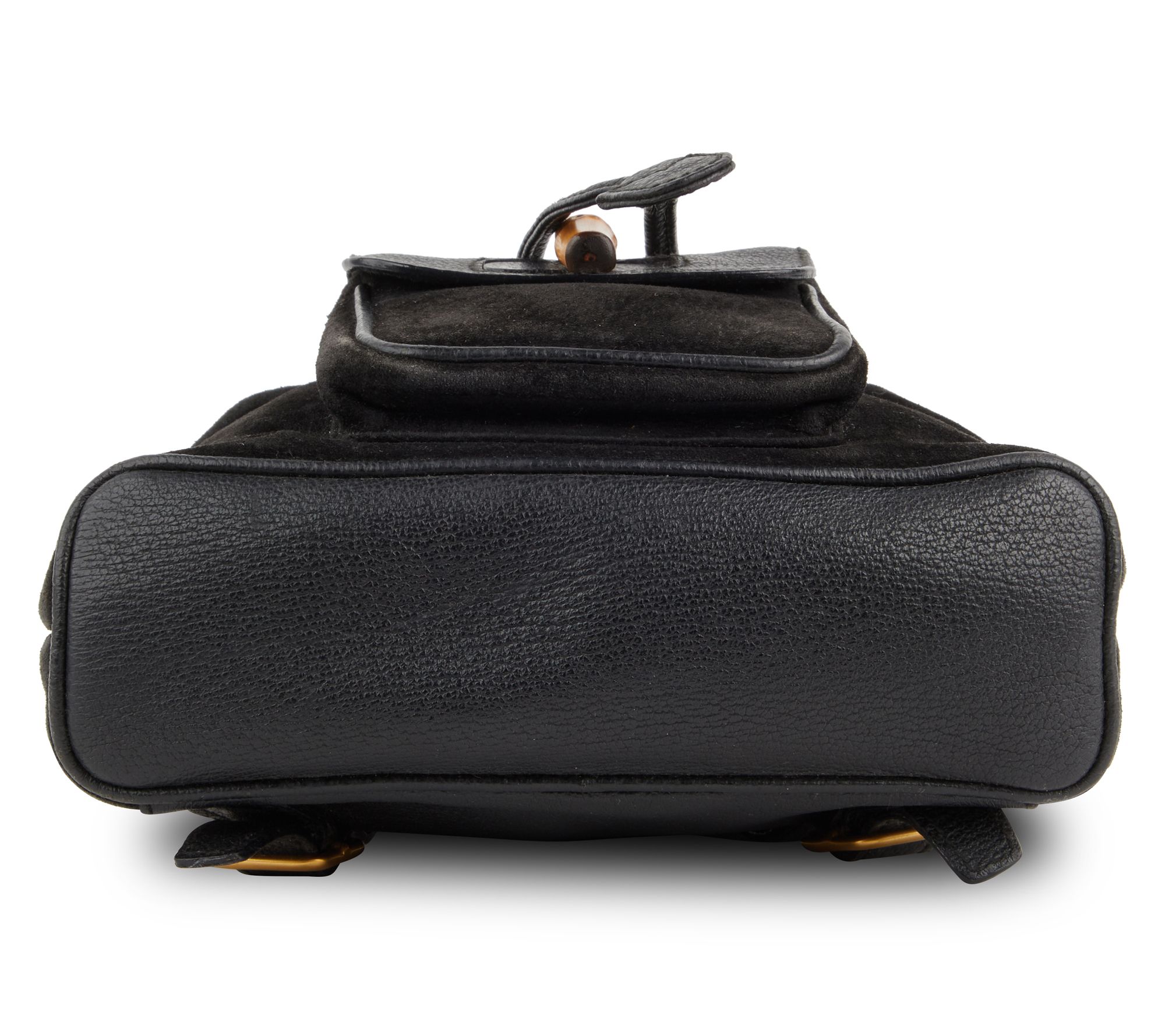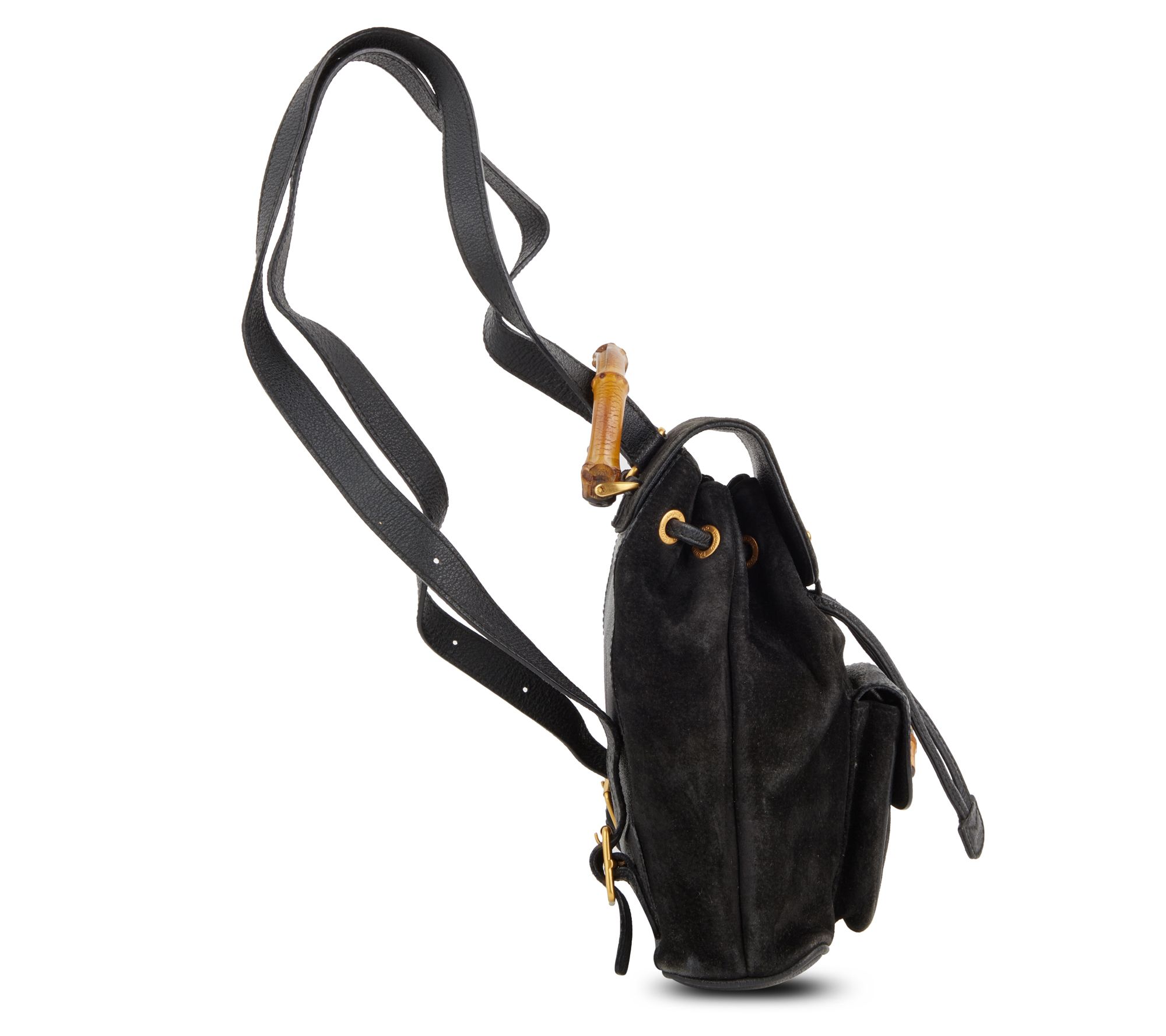 Practical yet chic, this pre-owned Gucci backpack is perfect for urban adventures or weekend getaways. With its classic black suede and practical compartments, you'll be stylish and organized on the go. From Gucci.