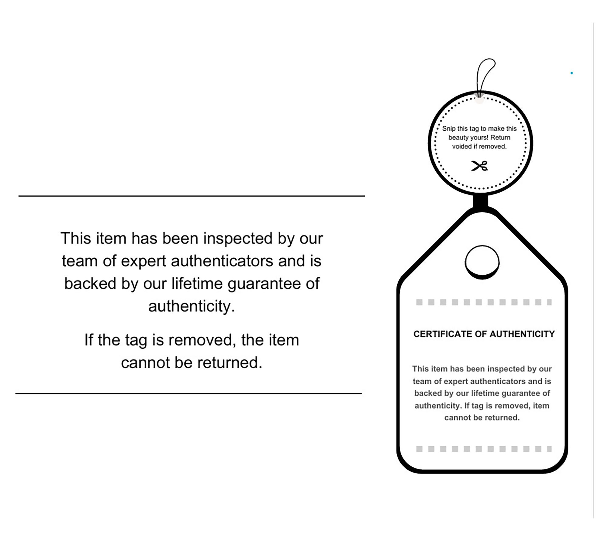 Your purchase of a Pre-Owned Designer Handbag will include an attached authentication tag, ensuring it has met the highest of standards and verifying its authenticity. All returns must include this authentication tag still attached to the item.