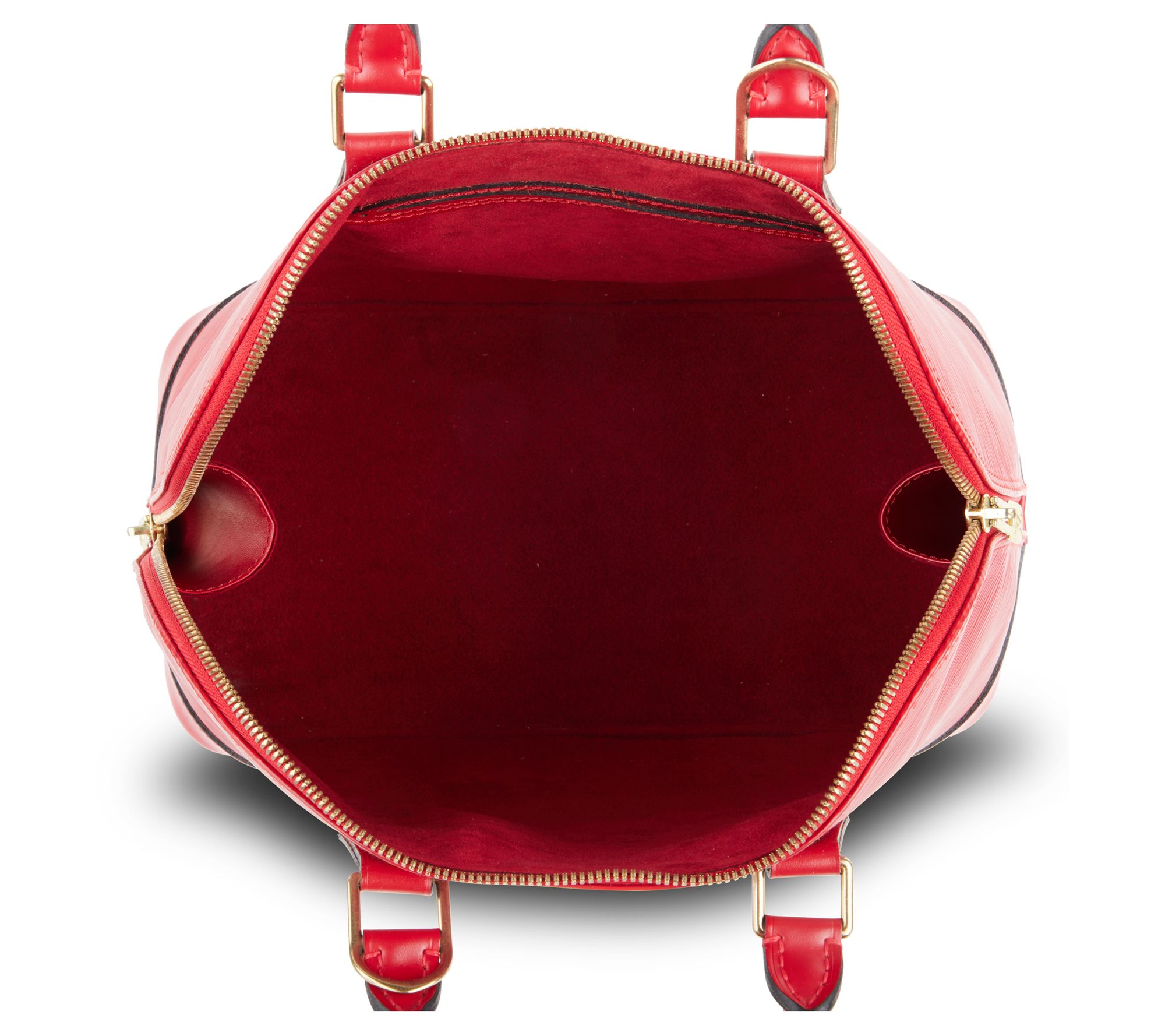 Bring sophisticated style and a pop of fun color to your look when you have this pre-owned Alma, a handbag that features a red finish, a structured shape, and a spacious interior that holds all of your everyday necessities. From Louis Vuitton.
