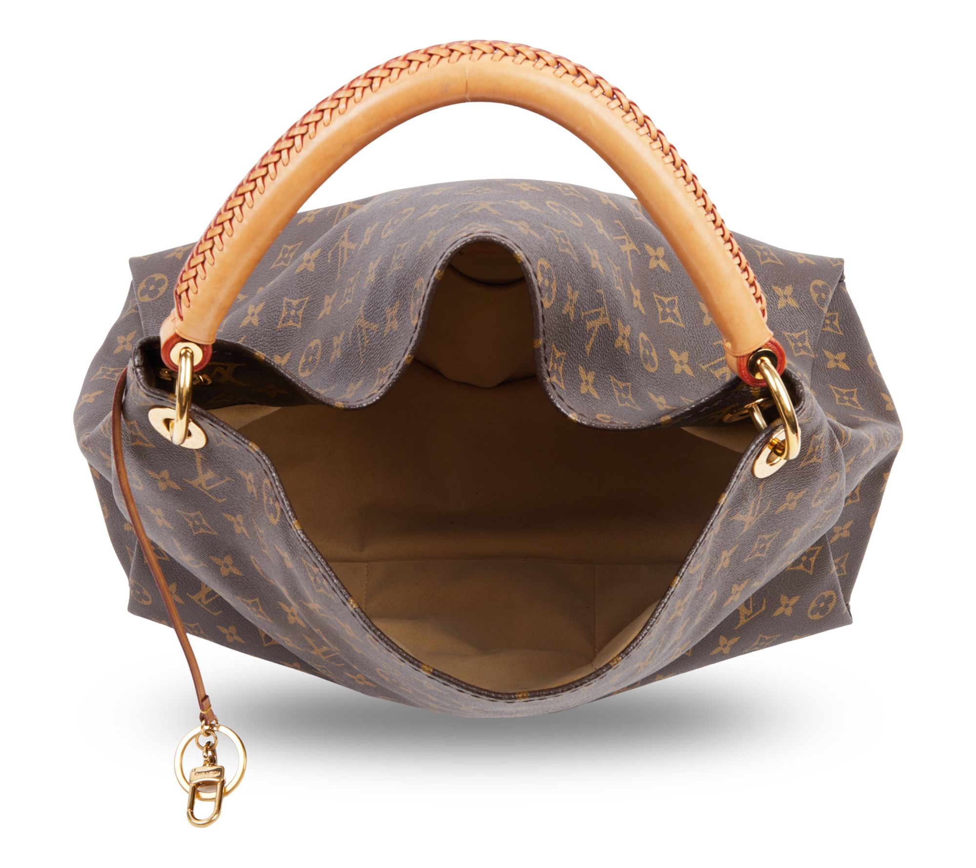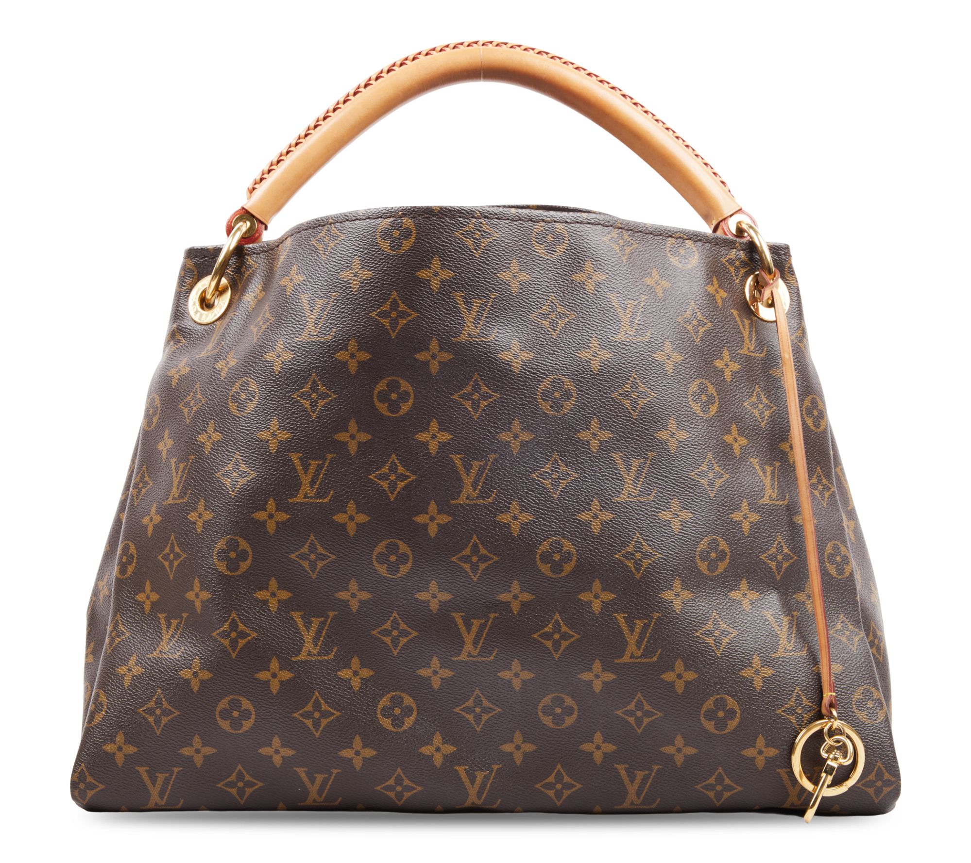 The Louis Vuitton Artsy Monogram MM in brown combines classic elegance with everyday utility. Featuring a luxurious leather handle and a rich golden-colored key ring, this shoulder bag will elevate any outfit. From Louis Vuitton.