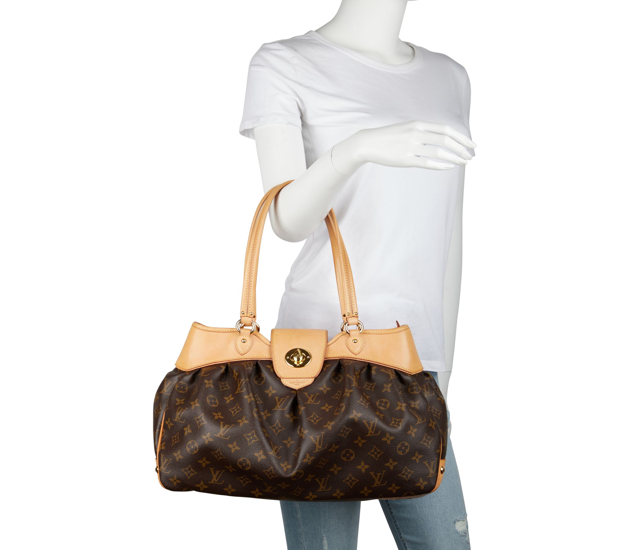 Give your ensemble a fashionable boost of style with this pre-owned designer tote featuring a roomy interior to hold all of your things while you're on the go. From Louis Vuitton.