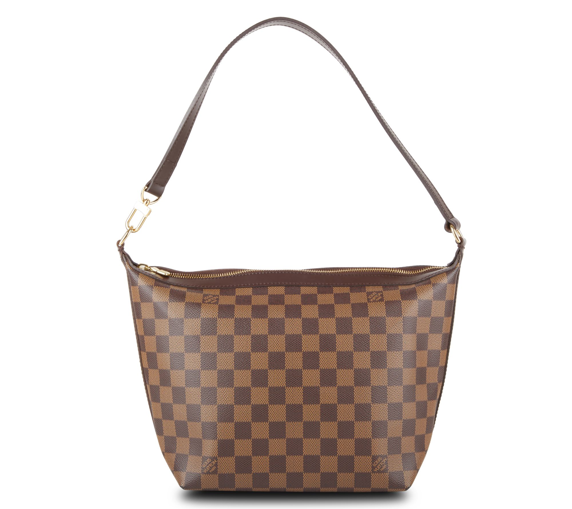 This pre-owned shoulder bag offers a timeless touch to daily routines, pairing the classic Damier Ebene design with a single strap for easy wear on errands or brunch meetups. Crafted from supple calf leather, this versatile accessory elevates every look with understated elegance. From Louis Vuitton.