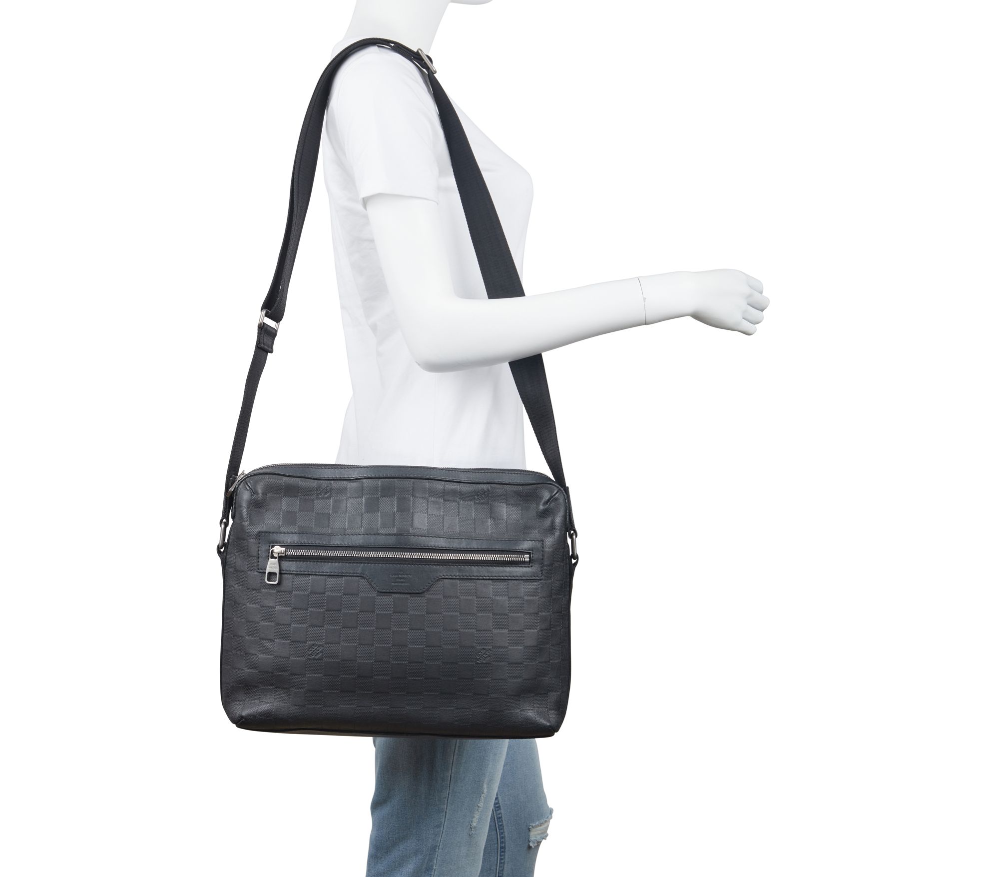 Fashion meets function with this stylish pre-owned shoulder bag crafted in black Damier Infini leather with a roomy compartmentalized interior to keep all of your essentials organized. From Louis Vuitton.