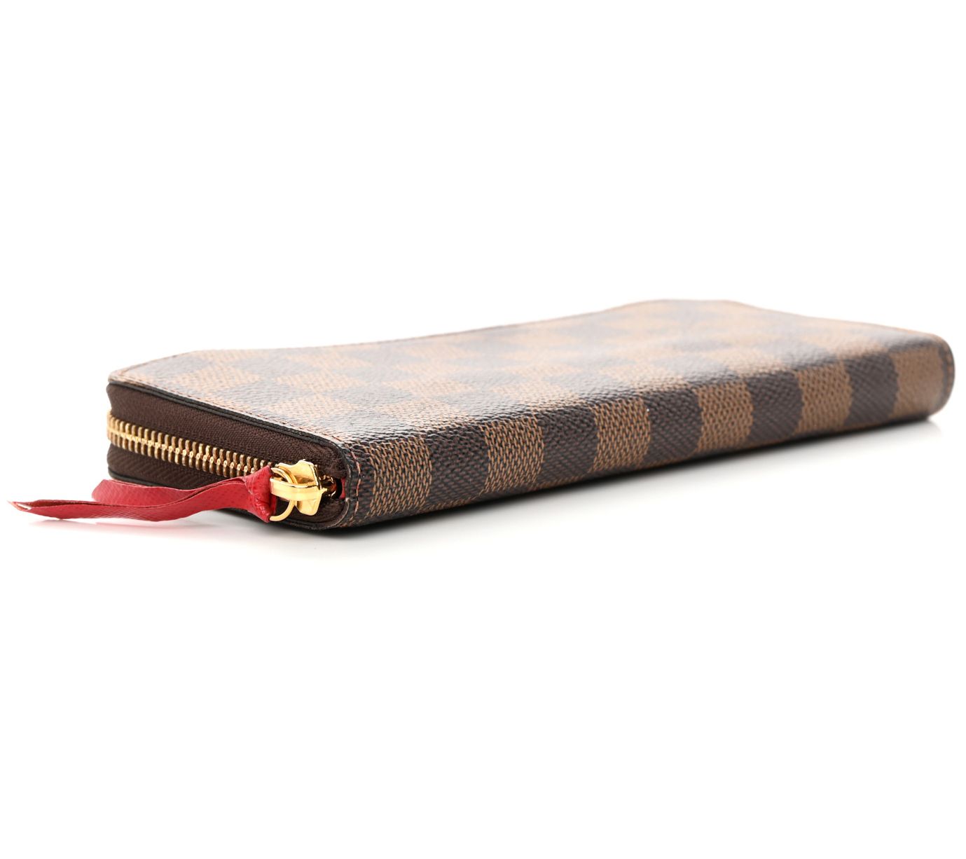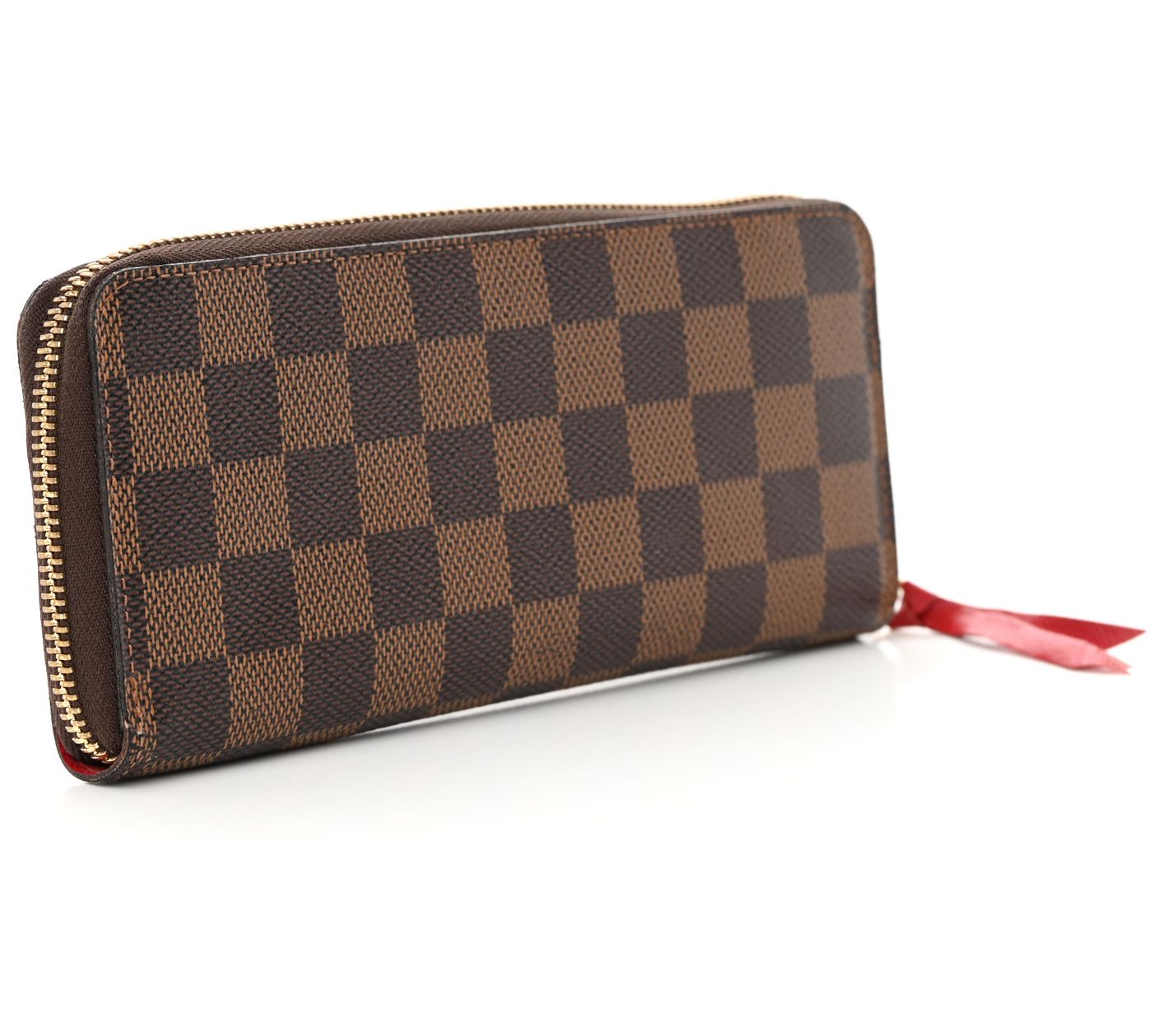 Meet your new favorite accessory! This pre-owned Louis Vuitton Clemence wallet in Damier Ebene is perfect for keeping your cards and cash organized while looking effortlessly chic. The goldtone hardware adds a touch of luxury. From Louis Vuitton.