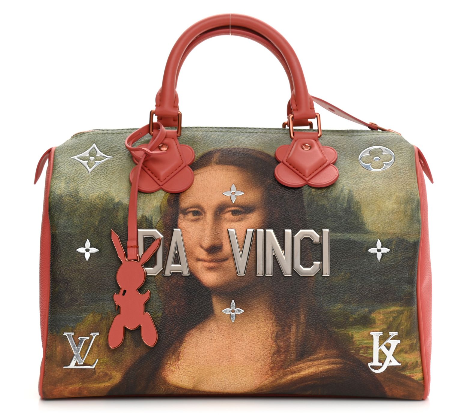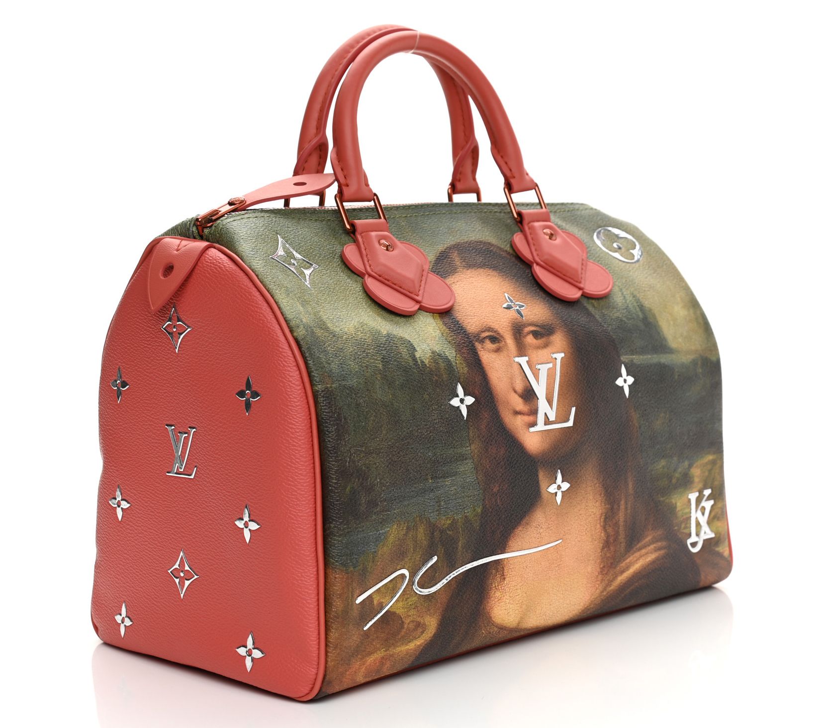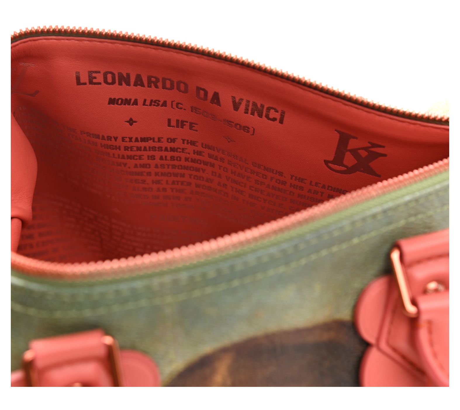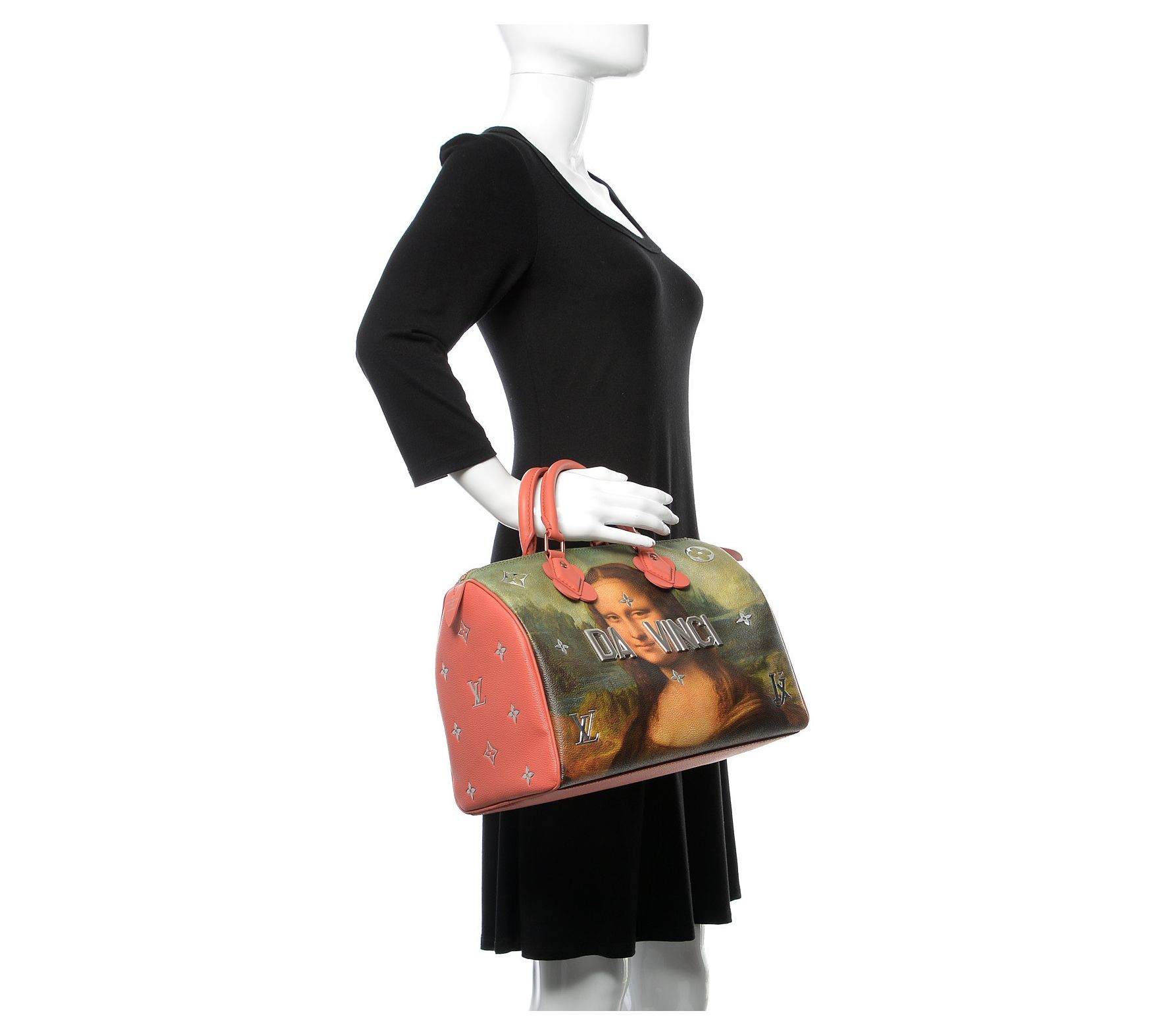 This pre-owned Louis Vuitton Da Vinci Speedy 30 is a true masterpiece. With a striking Mona Lisa painting on coated canvas, itâs hard not to fall in love. The pink calfskin leather trim and bold silvertone accents ensure you stand out with every step. Pack your essentials in the spacious interior and enjoy the impeccable style and craftsmanship. From Louis Vuitton.