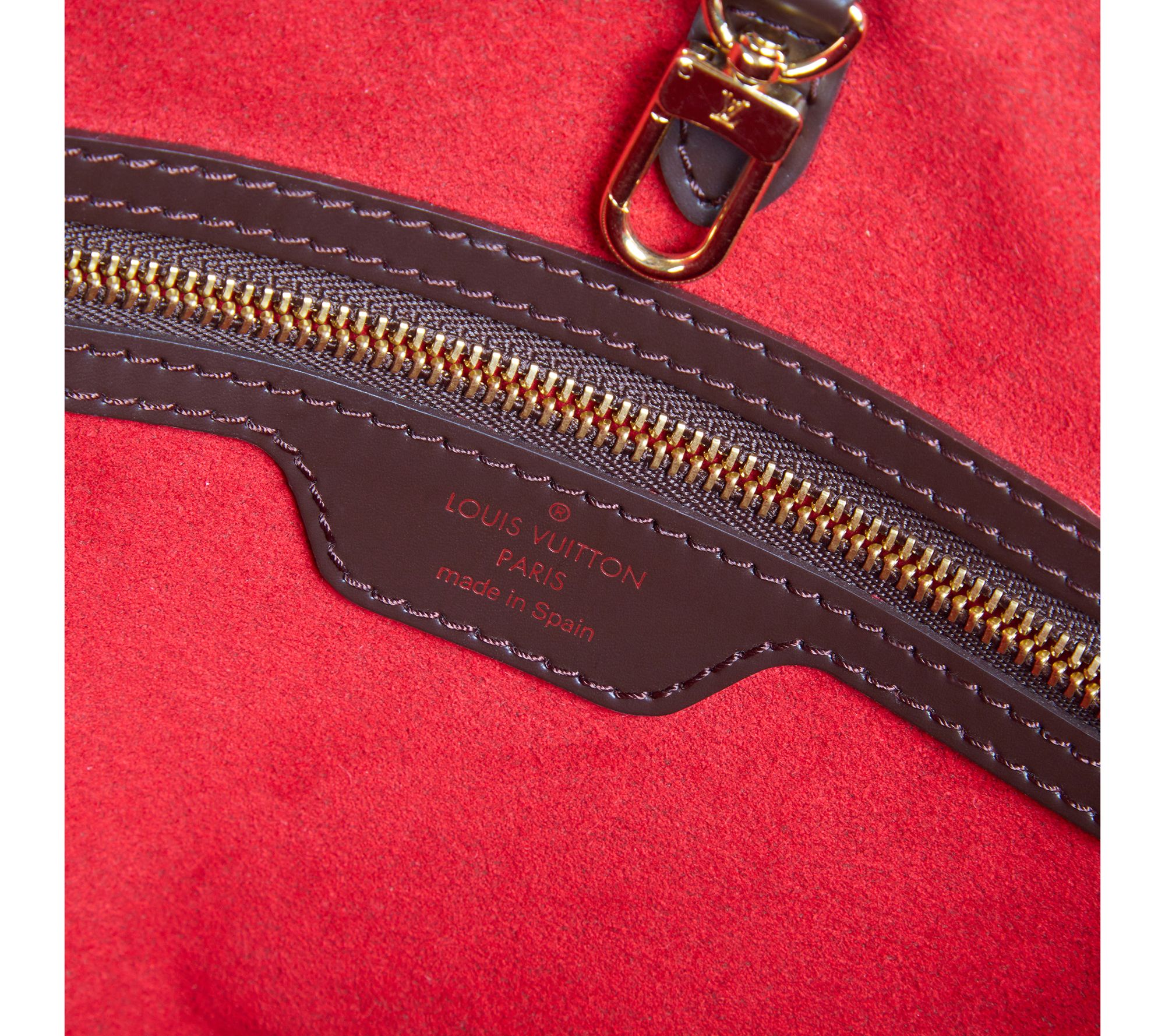 • Red lined interior, two slip pockets, one zip pocket