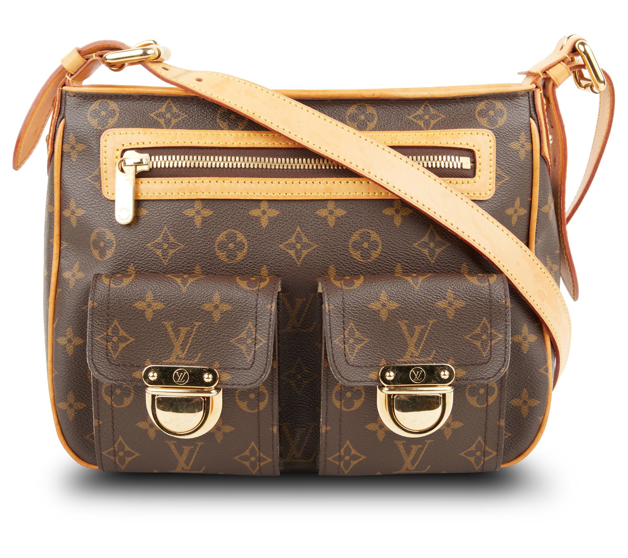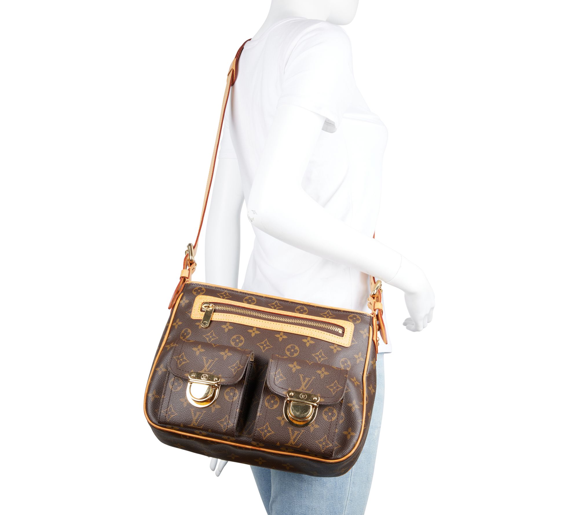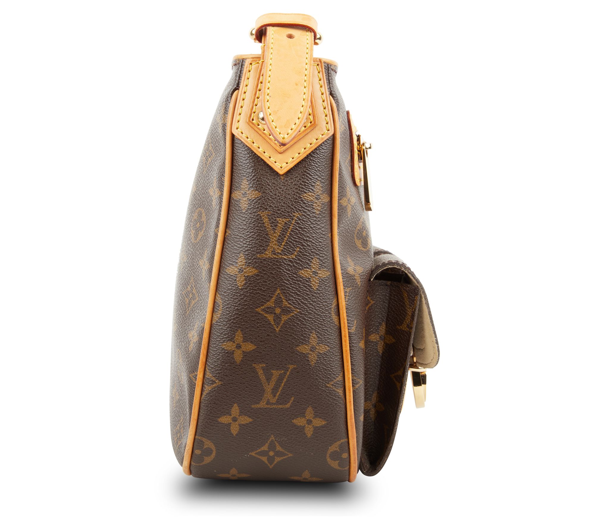 Elevate your style with the pre-owned Louis Vuitton Hudson Long Strap Monogram GM Shoulder Bag. This timeless piece features a monogram design and gold hardware, perfect for any season. Enjoy the convenience of multiple pockets and an adjustable, detachable strap for versatile wear. From Louis Vuitton.