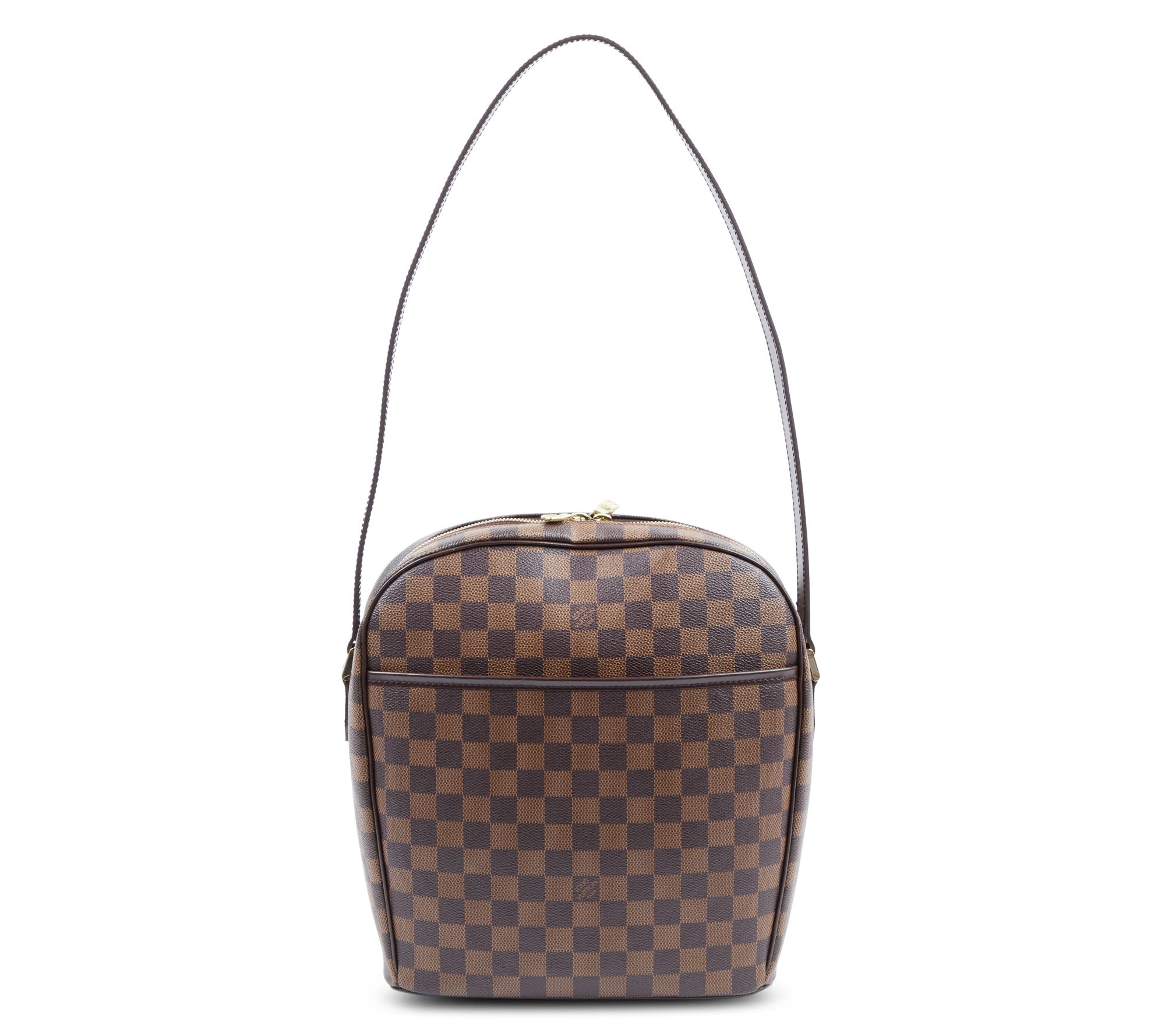 The pre-owned Louis Vuitton Ipanema GM is a contemporary and chic shoulder bag perfect for the seasonless wardrobe. Crafted in the exquisite Damier Ebene pattern, it offers a structured silhouette, a wide front patch pocket, and a compact yet roomy interior, effortlessly combining style and function. From Louis Vuitton.