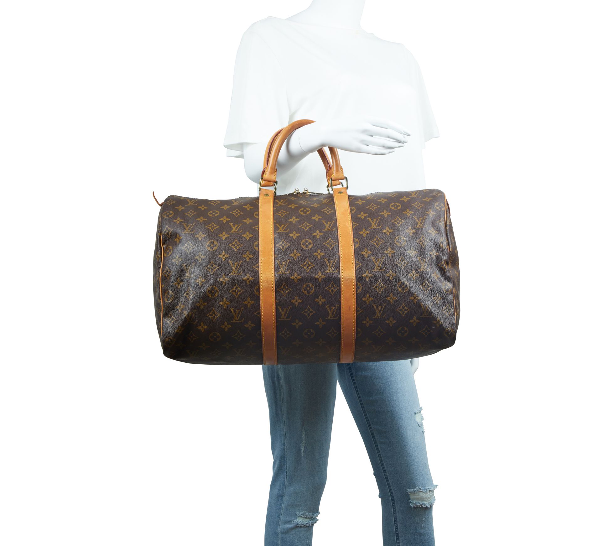 Your weekend adventures just got a lot more sophisticated. Pack your essentials in this spacious pre-owned Keepall 50 and reach your destination in luxurious style. From Louis Vuitton.