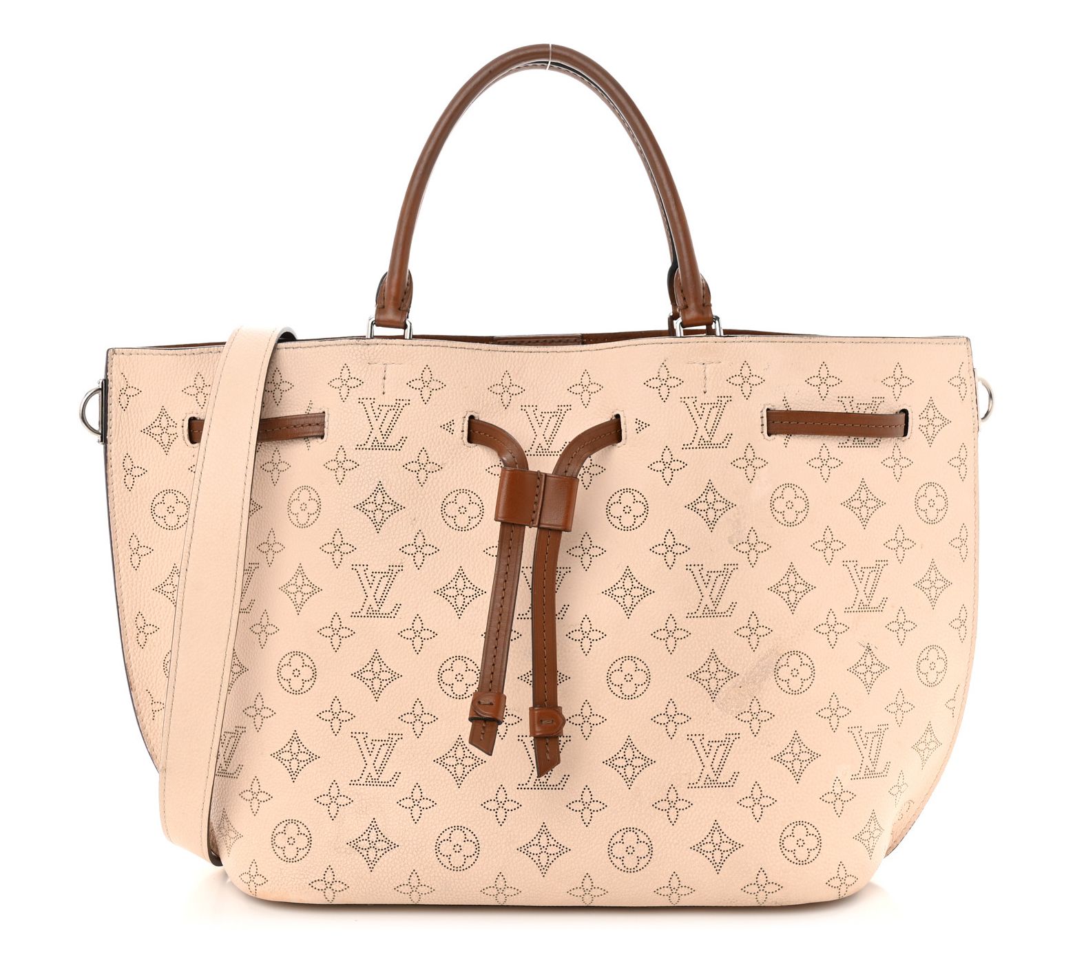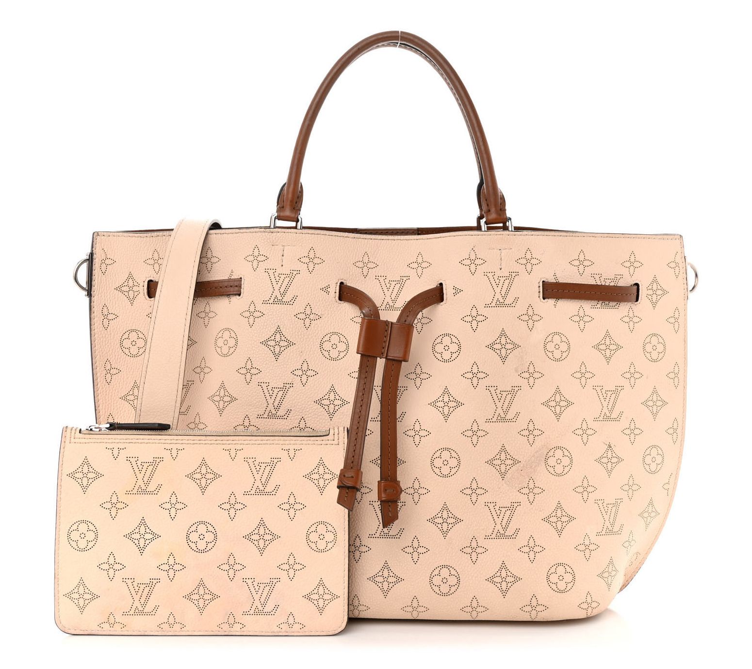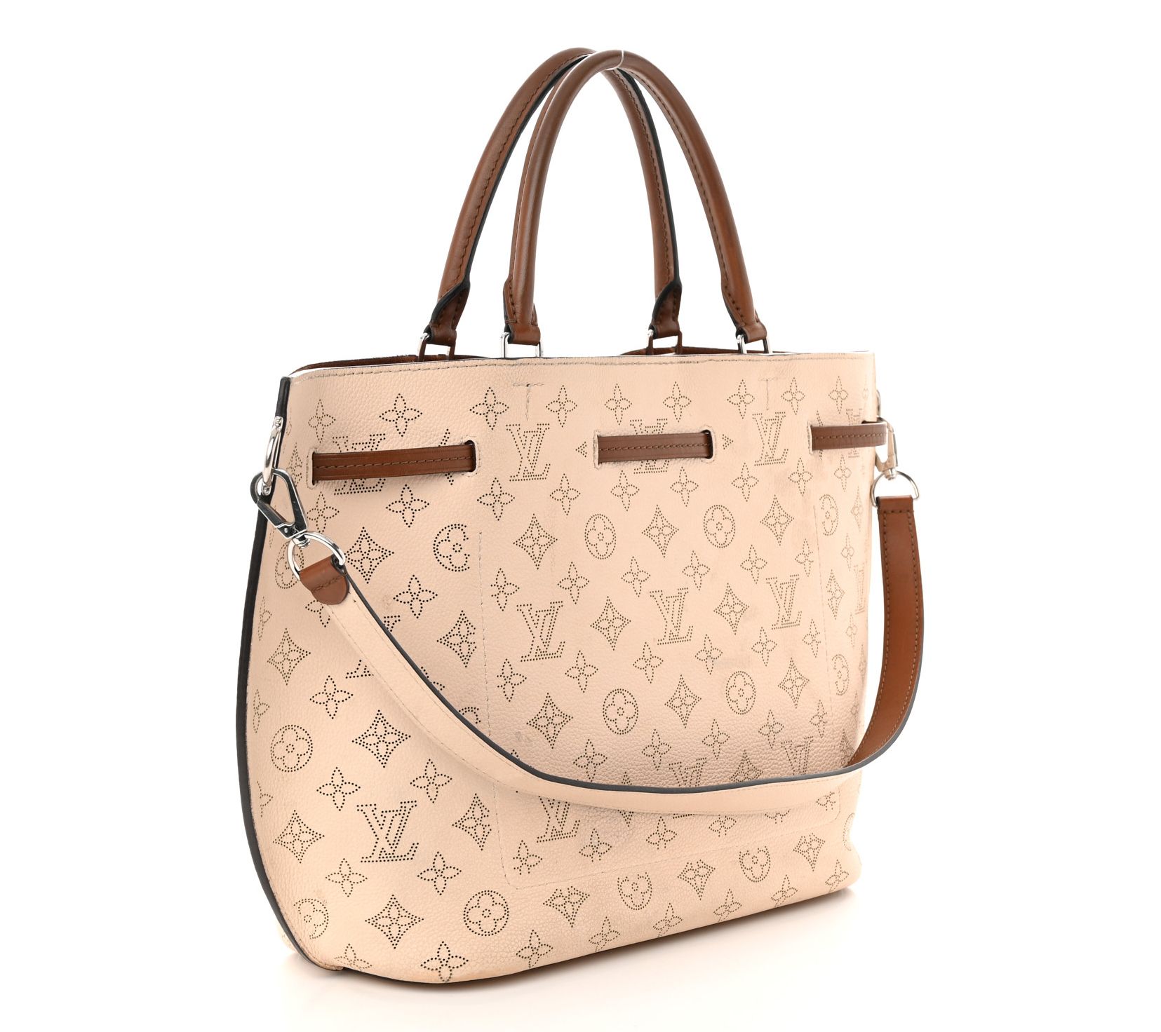 The pre-owned Louis Vuitton Mahina Girolata shoulder bag is perfect for those who value both elegance and functionality. With its adjustable drawstring closure and spacious interior, it's ideal for daily use and nights out. From Louis Vuitton.