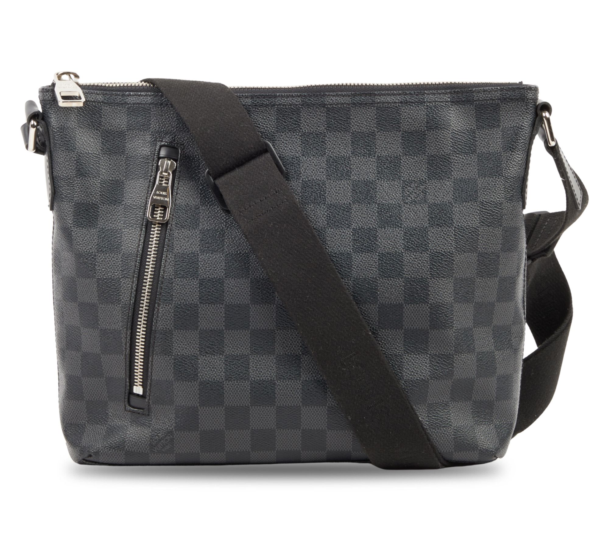 Carry your essentials in style with this pre-owned Louis Vuitton Mick PM bag. Crafted from Damier Graphite coated canvas, the bag combines elegance with practicality. Its adjustable shoulder strap and handy front zipper pocket make it perfect for everyday use. From Louis Vuitton.